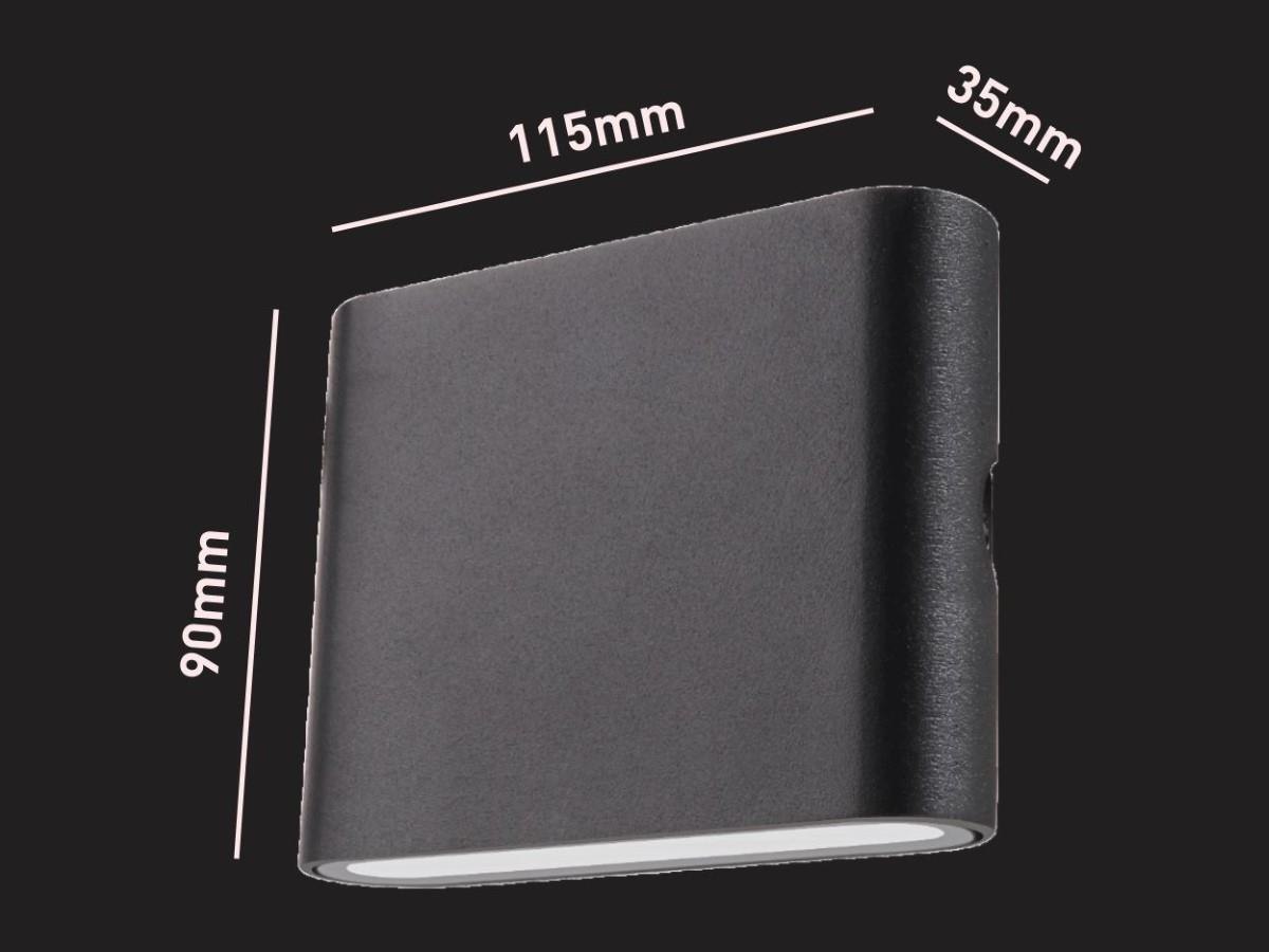 8 x 6 watt Design Wandlamp duo licht zand zwart warm wit waterdicht - lichtkleur 3000K warm wit - lichtstroom 490 lumen - SMD LED - IP65 waterdicht - materiaal aluminium en glas - afm 115mm x90mm x35mm - voltage 220-240V - bevestiging inclusief - geschikt voor binnen en buiten - SKU 01076