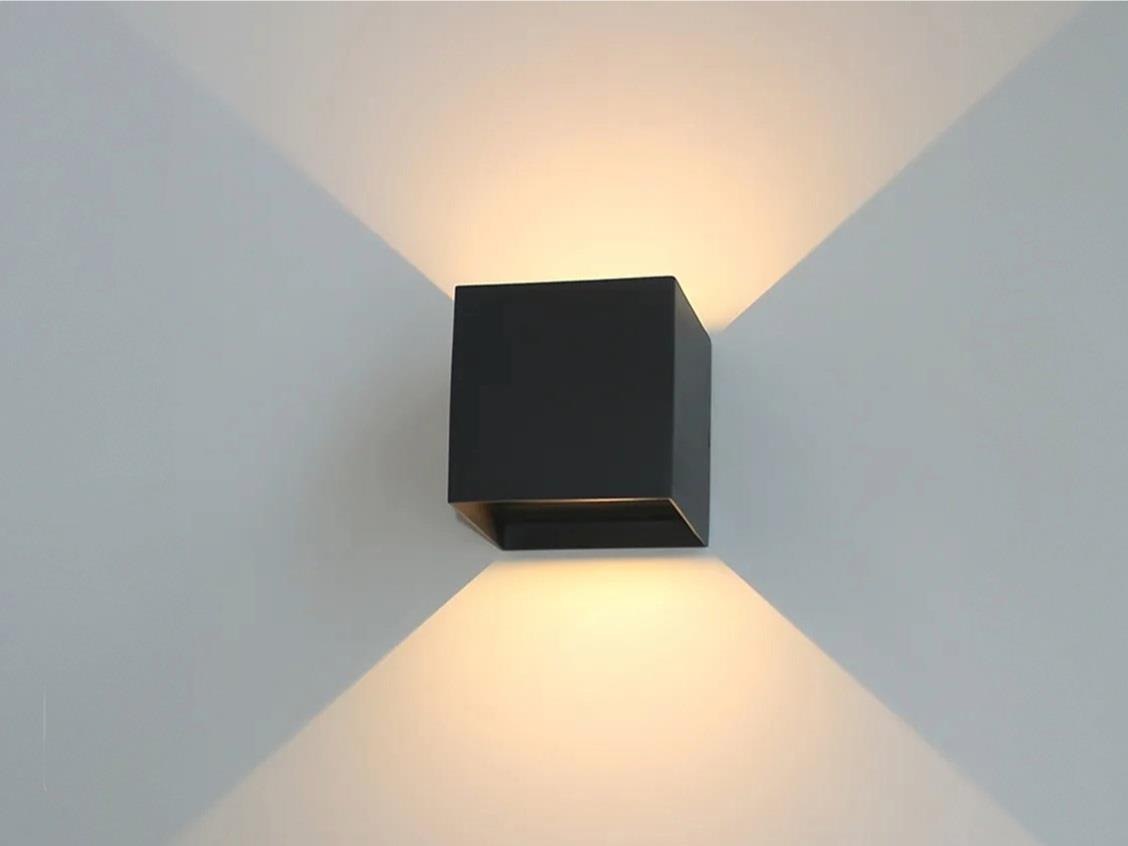 4 x 7 watt LED zand zwart wandlamp kubus duo licht verstelbaar - afdichting IP65 - verstelbare hoek van de lichtbundels - lichtkleur 3000K warm wit - lichtstroom 600 lumen - COB LED - materiaal aluminium - boven en onder verlichting - afm. 100mm x 100mm x 100mm - voltage 220-240V - levensduur 20000 uur - bevestiging inclusief - geschikt voor binnen en buiten - SKU 1166