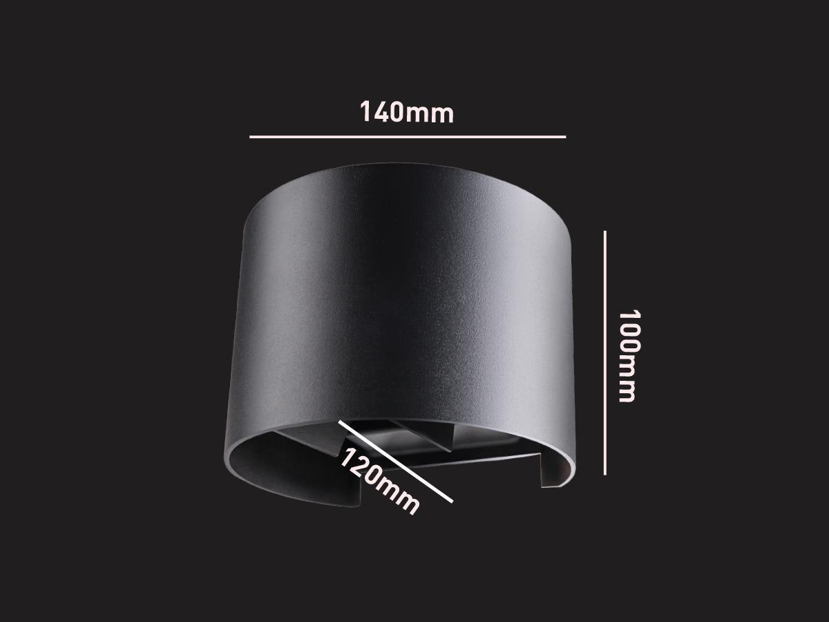 4 x 12 watt 2x6W LED zand zwart rond duo licht verstelbaar waterdicht - afdichting IP65 waterdicht - verstelbare hoek van de lichtbundels - lichtkleur 3000K warm wit - lichtstroom 1160 lumen - COB LED - materiaal aluminium - boven en onder verlichting - afm. Ø 140mm x 120mm x 100mm - voltage 220-240V - bevestiging inclusief - geschikt voor binnen en buiten - SKU 00978