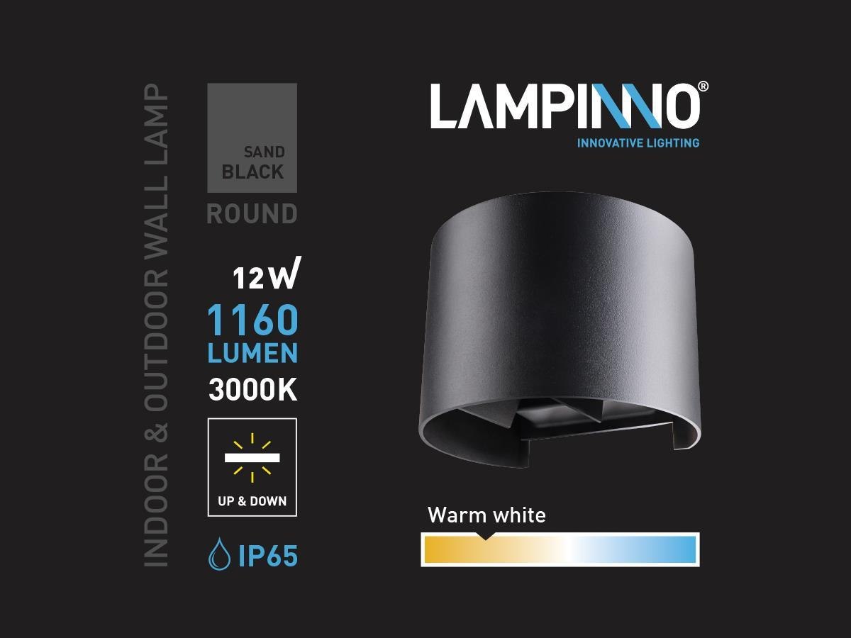 6 x 12 watt 2x6W LED zand zwart rond duo licht verstelbaar waterdicht - afdichting IP65 waterdicht - verstelbare hoek van de lichtbundels - lichtkleur 3000K warm wit - lichtstroom 1160 lumen - COB LED - materiaal aluminium - boven en onder verlichting - afm. Ø 140mm x 120mm x 100mm - voltage 220-240V - bevestiging inclusief - geschikt voor binnen en buiten - SKU 00978