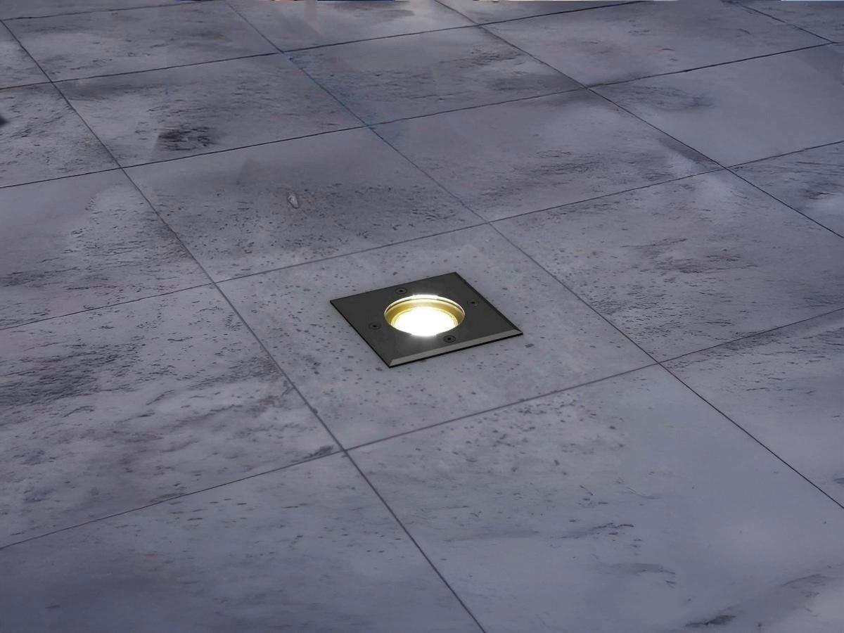 6 x GU10 Grondspot vierkant zand zwart - IP65 waterdicht - materiaal roestvrij staal RVS en glas - afm 105mm x 105mm x 135mm- voltage 220-240V - bevestiging niet inclusief - geschikt voor binnen en buiten - GU10 spot niet inclusief - SKU 00888