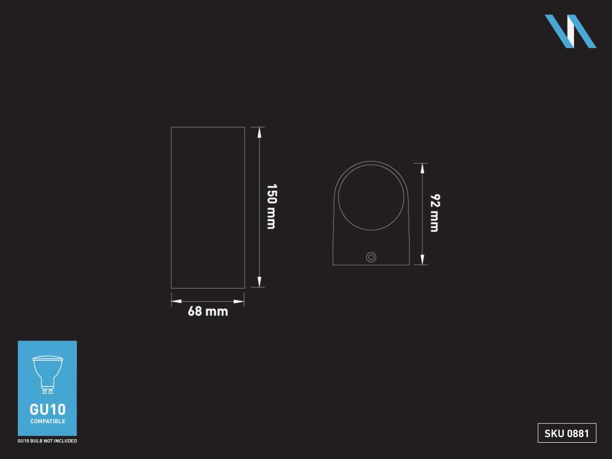 6 x Wandlamp modern halfrond GU10 duo fitting zand wit waterdicht - IP44 waterdicht - afm. 92 x 68 x 150 mm - materiaal aluminum en glas diffuser - bevestiging inclusief - GU10 fitting - bulb niet inbegrepen - geschikt voor binnen en buiten - 2 x bulb invoer - voltage 220-240V - max 2 x 35 watt - SKU 00881