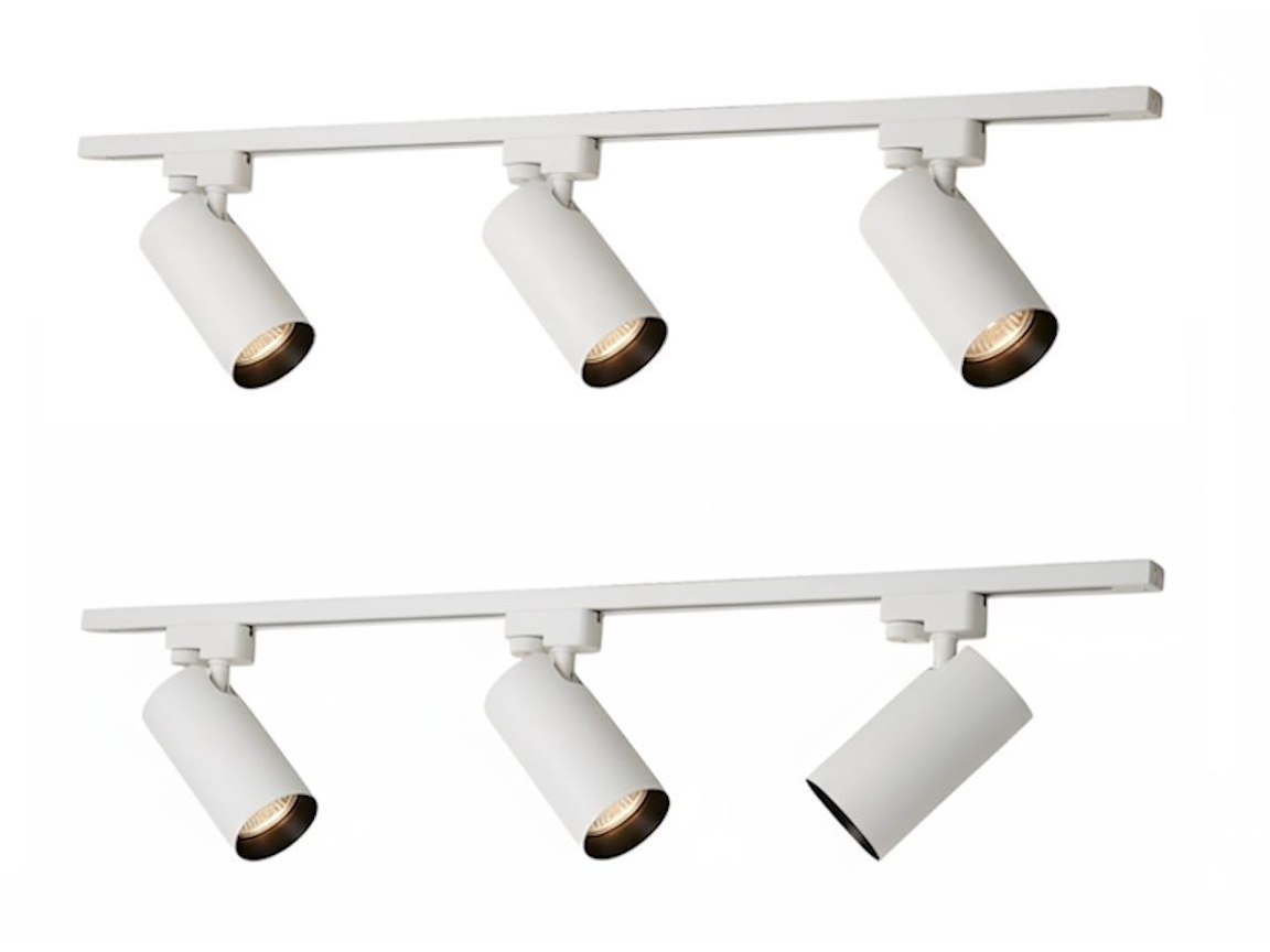 1 x 2 stuks 1 fase 2 draad 100cm rail - materiaal aluminium - bevestiging inclusief - 220-240V - afdichting IP20 - 1 stuk door verbinder - product kleur zand wit en zwart - 6 stuk railspots GU10 armatuur afm. Ø 60 x 120mm draaibaar 350° en kantelbaar 90° - bulb niet inbegrepen - de rail kan eenvoudig op de gewenste lengte worden gezaagd - geschikt voor binnen - SKU 902 SKU 906 SKU 826