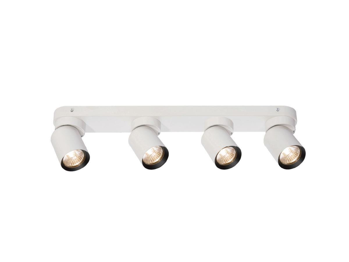 2 x GU10 Opbouwspot Armatuur 4 cilinder zand wit en zwart draaibaar - afdichting IP20 - product kleur zand wit en zwart ring - afm. Ø 60 x 100mm - afm wandhouder 600 x 60 x 25mm - draaibaar 350° en kantelbaar 50° - materiaal aluminum en ijzer - bevestiging inclusief - fitting GU10 - bulb niet inbegrepen - geschikt voor binnen - 4 x bulb invoer - voltage 220-240V - max 40 watt - SKU 00968