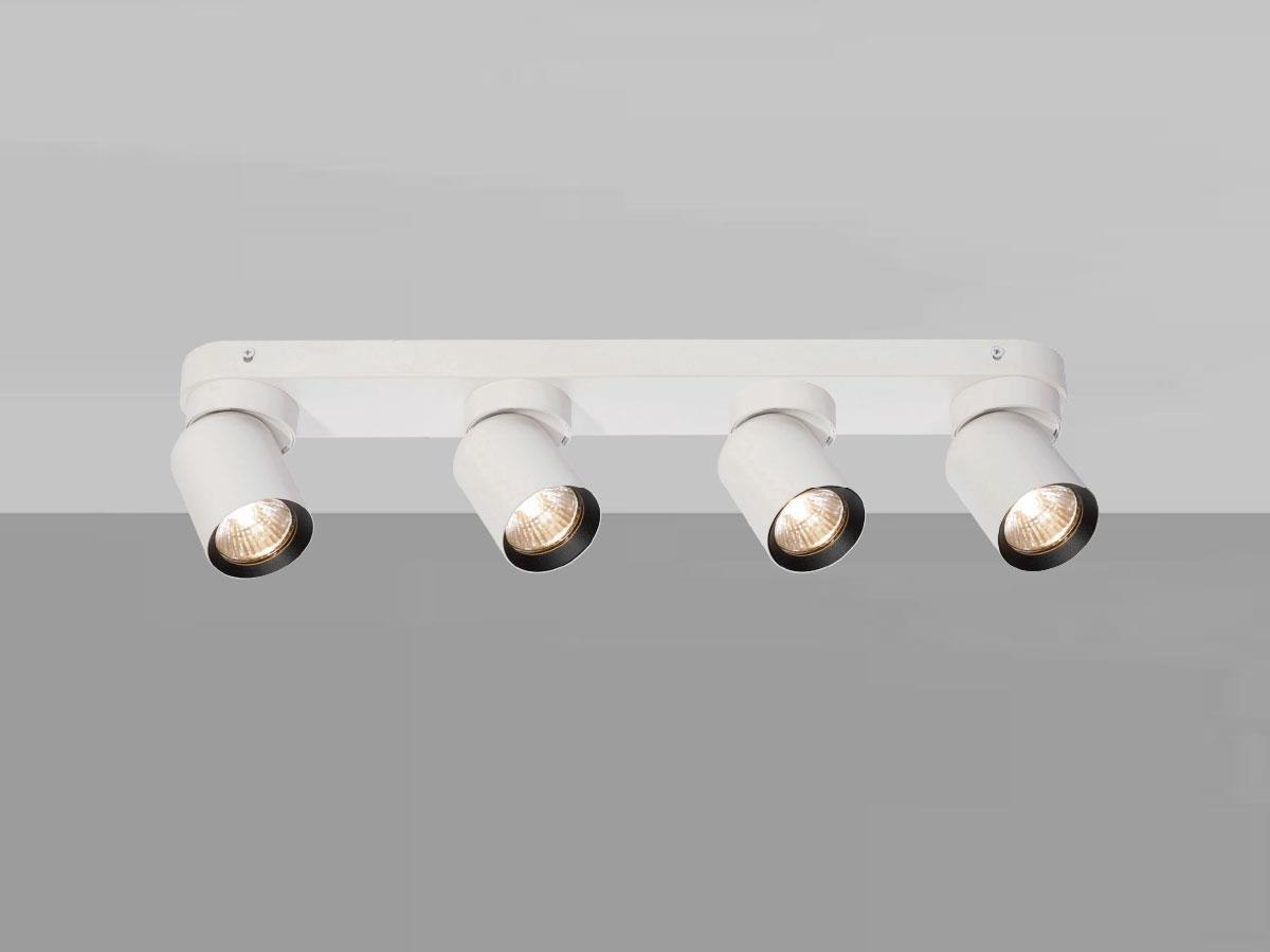 4 x GU10 Opbouwspot Armatuur 4 cilinder zand wit en zwart draaibaar - afdichting IP20 - product kleur zand wit en zwart ring - afm. Ø 60 x 100mm - afm wandhouder 600 x 60 x 25mm - draaibaar 350° en kantelbaar 50° - materiaal aluminum en ijzer - bevestiging inclusief - fitting GU10 - bulb niet inbegrepen - geschikt voor binnen - 4 x bulb invoer - voltage 220-240V - max 40 watt - SKU 00968