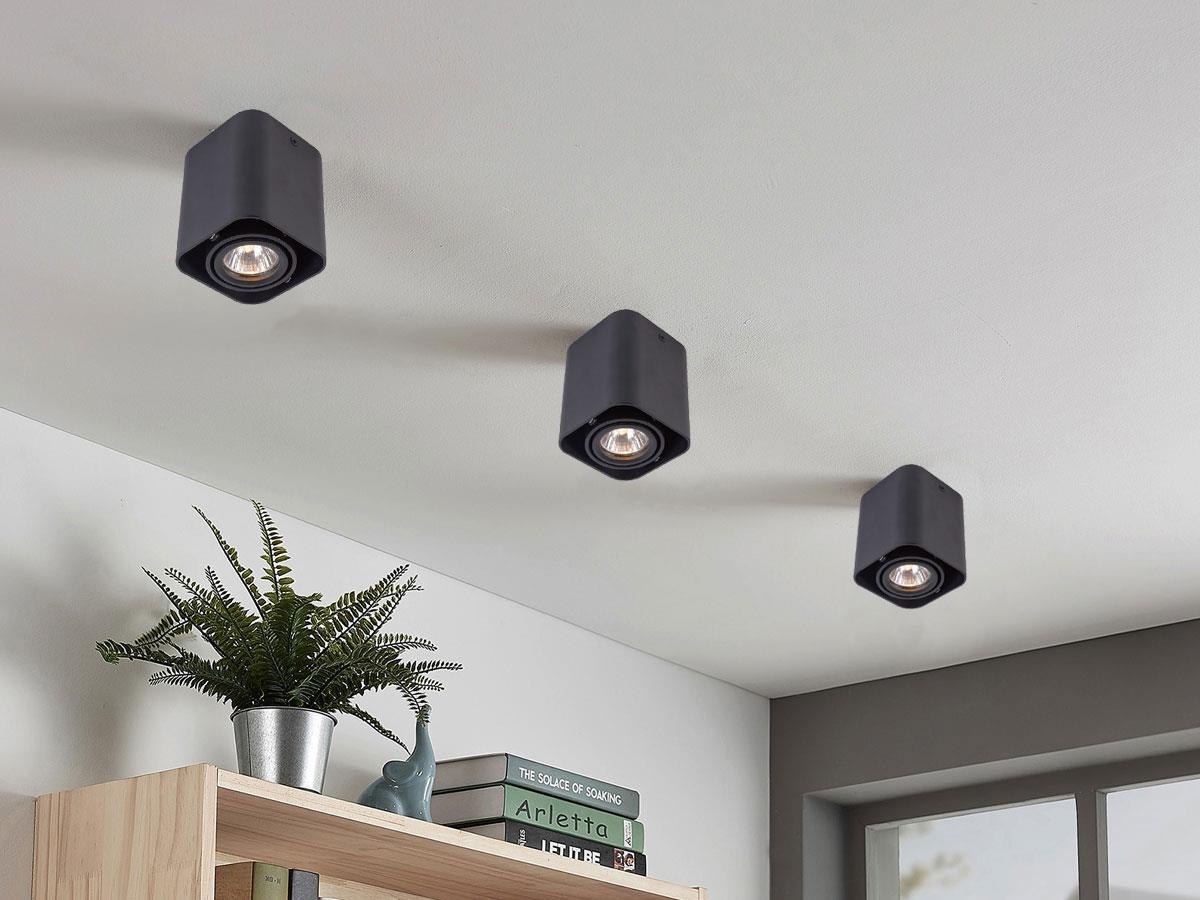 6 x GU10 Opbouwspot Armatuur rechthoekig zand zwart kantelbaar - afdichting IP20 - product kleur zand zwart - afm. 90 x 90 x 100mm - bevestiging inclusief - materiaal aluminium - fitting GU10 - bulb niet inbegrepen - geschikt voor binnen - een bulb invoer - voltage 220-240V - SKU 00935