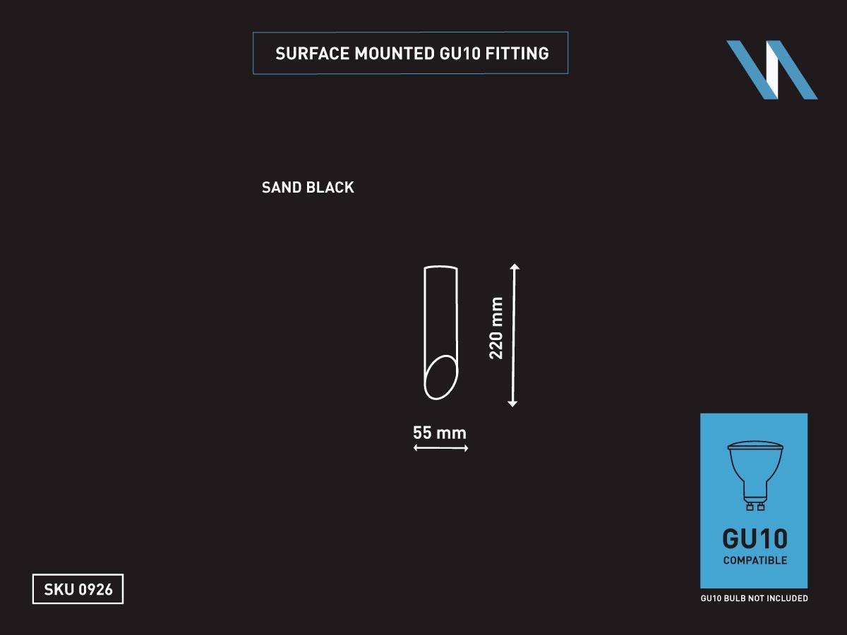 16 x GU10 Opbouw design armatuur cilinder zand zwart 22cm - afdichting IP20 - product kleur zand zwart - afm. Ø 55 x 220mm -bevestiging inclusief - materiaal aluminium - fitting GU10 - bulb niet inbegrepen - geschikt voor binnen - een bulb invoer - voltage 220-240V - SKU 0926