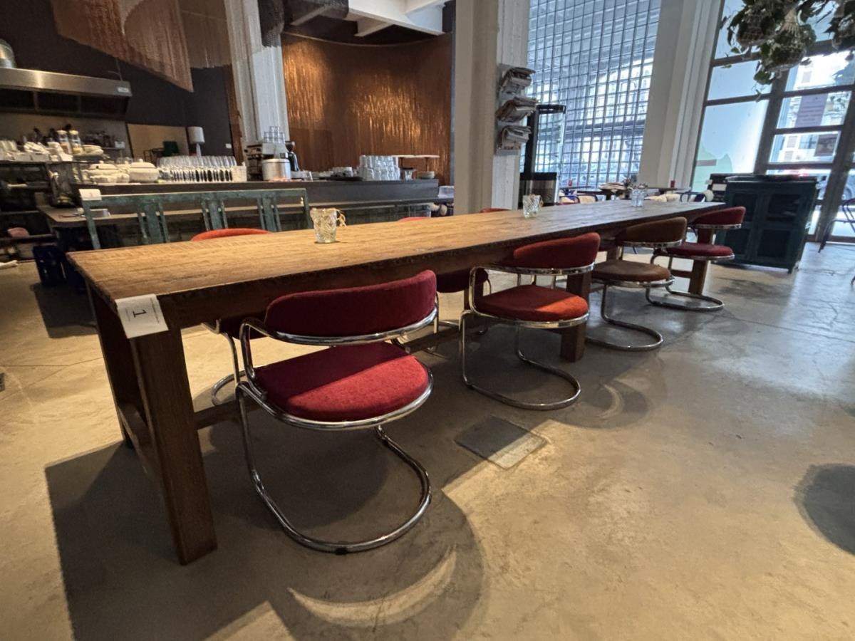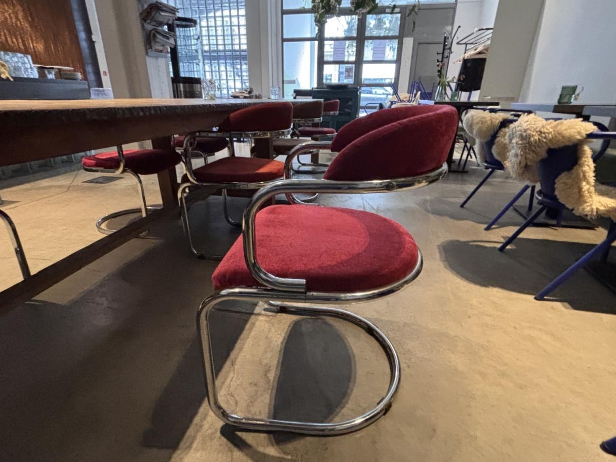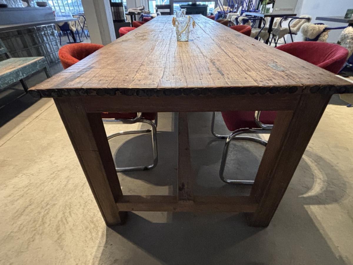 Vintage eetafel met 8 designstoelen