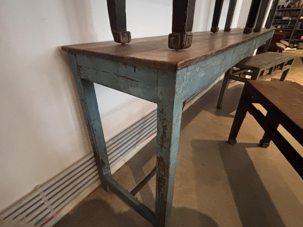 Vintage eetafel met 4 vintage zitbanken
