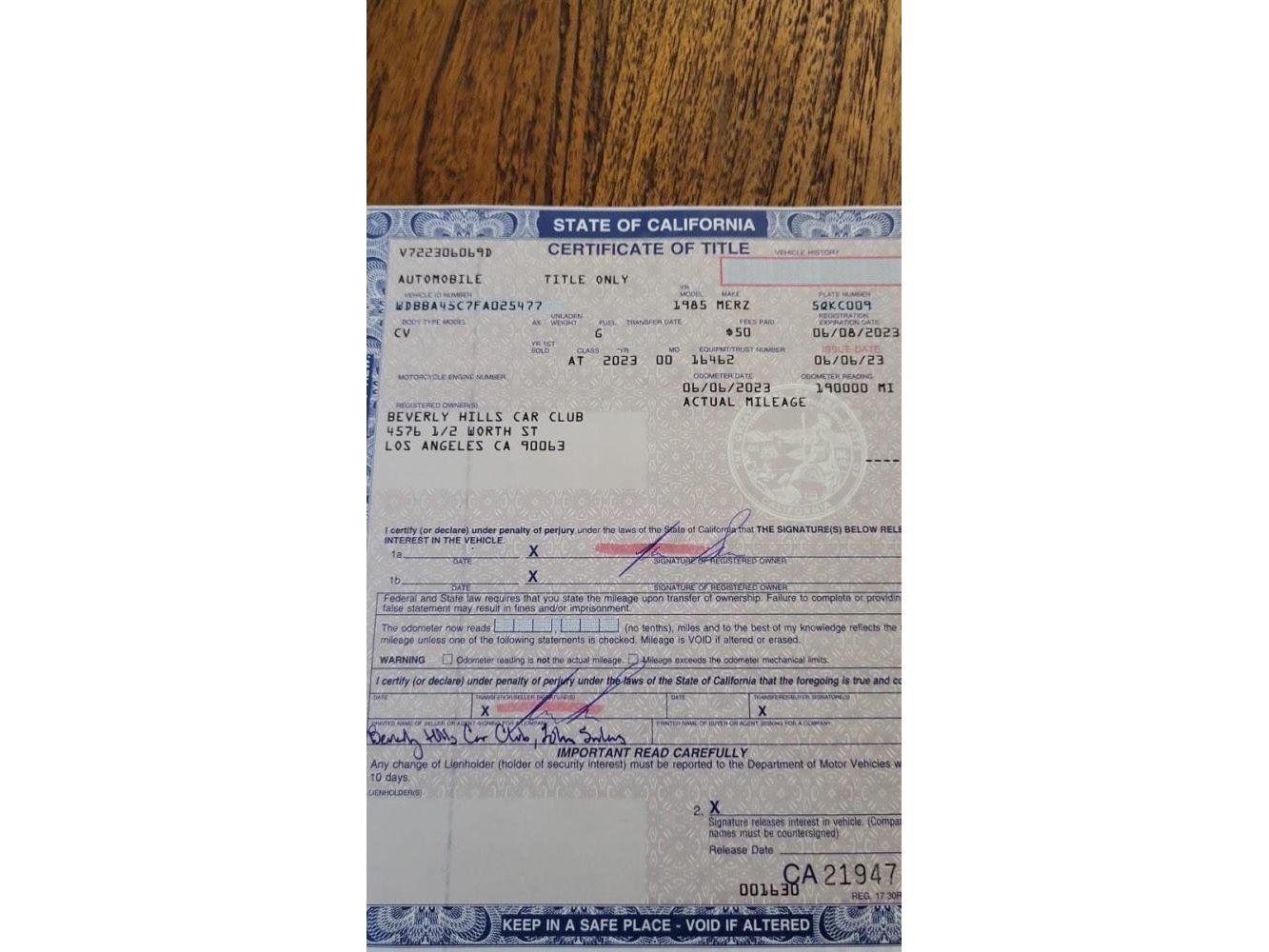 Mercedes 380sl, 1985