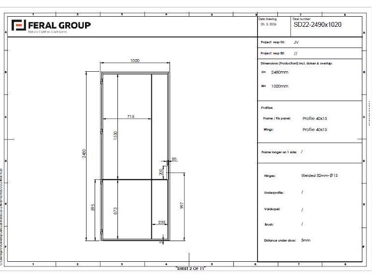 Authentiek gemaakte stalen binnendeur met 4 verdelingen. Afmetingen Breedte: 850mm x Hoogte 2200mm Opgebouwd uit kokerprofielen aanzicht 15mm - 6 aparte glasvlakken ambachtelijk afgemastikeerd aan beide zijden - heldere veiligheidsbeglazing - gepoederlakt RAL 9005 - adviesprijs € 1950