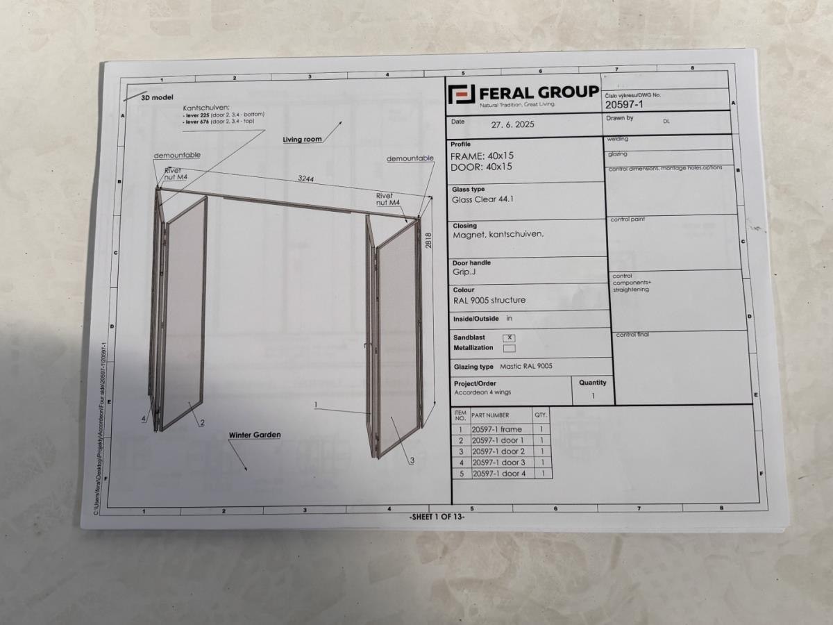 Authentiek gemaakte stalen harmonicadeuren. Afmetingen Breedte: 3244mm x Hoogte 2818mm Opgebouwd uit kokerprofielen aanzicht 15mm - ambachtelijk afgemastikeerd aan beide zijden - heldere veiligheidsbeglazing - gemastikeerd en gepoederlakt RAL 9005 - adviesprijs € 4950