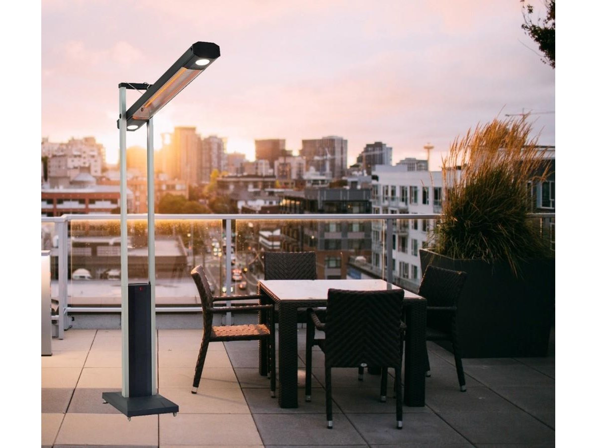 Electrische patio heater : 2200 W, 20 m2 warmteopp, afmetingen : 53 x 33 x 202 cm, gewicht 23,4 kgs, 1m80 cable cord