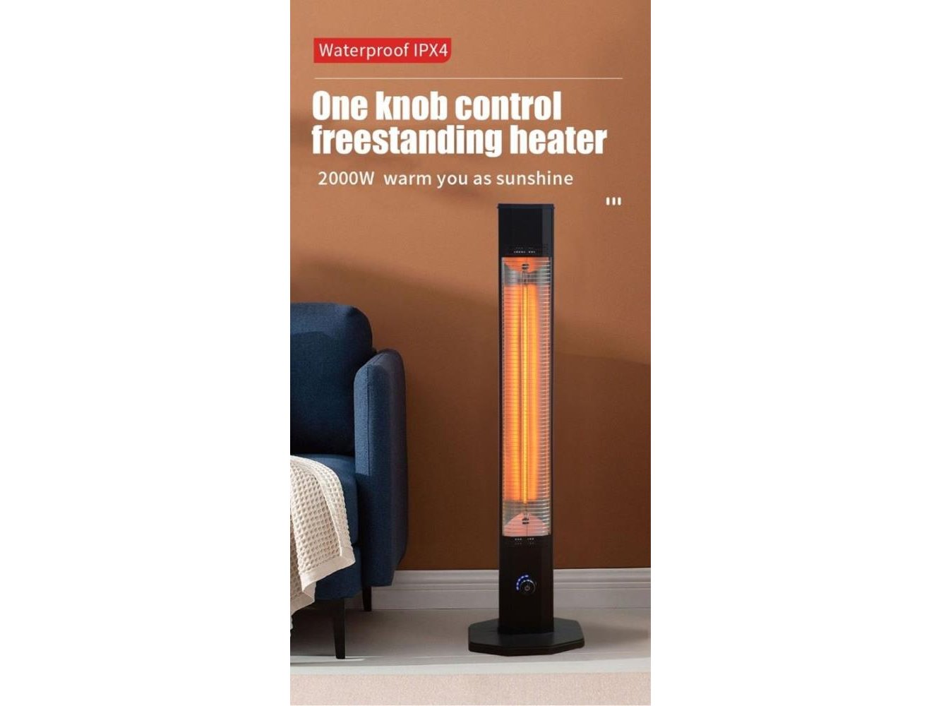 Electrische patio heater : 220240 V, 25 m2 warmteopp, afmetingen :115 cm, gewicht 5,6 kgs, 1m80 cable cord