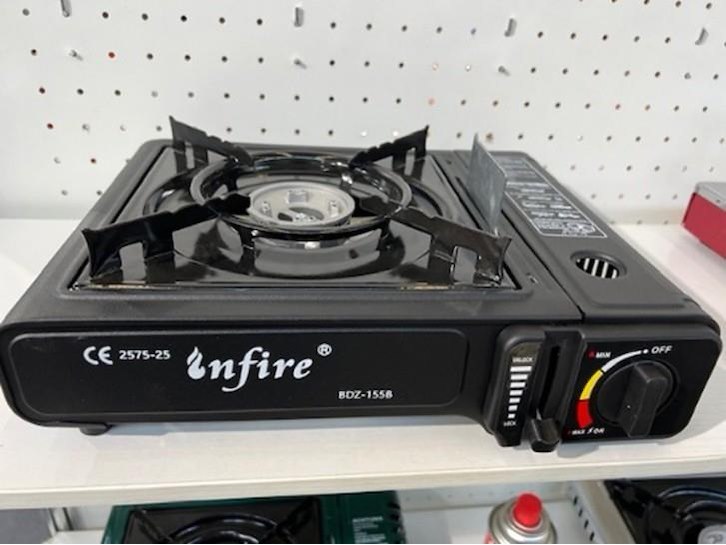 Gas vuurtjes , afmetingen : 342 x 280 x 105 mm, gewicht 1270 gr, verpakt in draagkoffer, kleur zwart