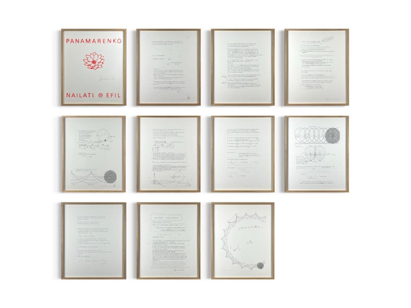 Serie van 10 lithografie�n door Panamarenko waarvan 1 gesigneerd met de bekende Efil Nailati figuratie - Allemaal professioneel ingelijst - Galerijprijs: 15500 72x60,5 cm (11x)