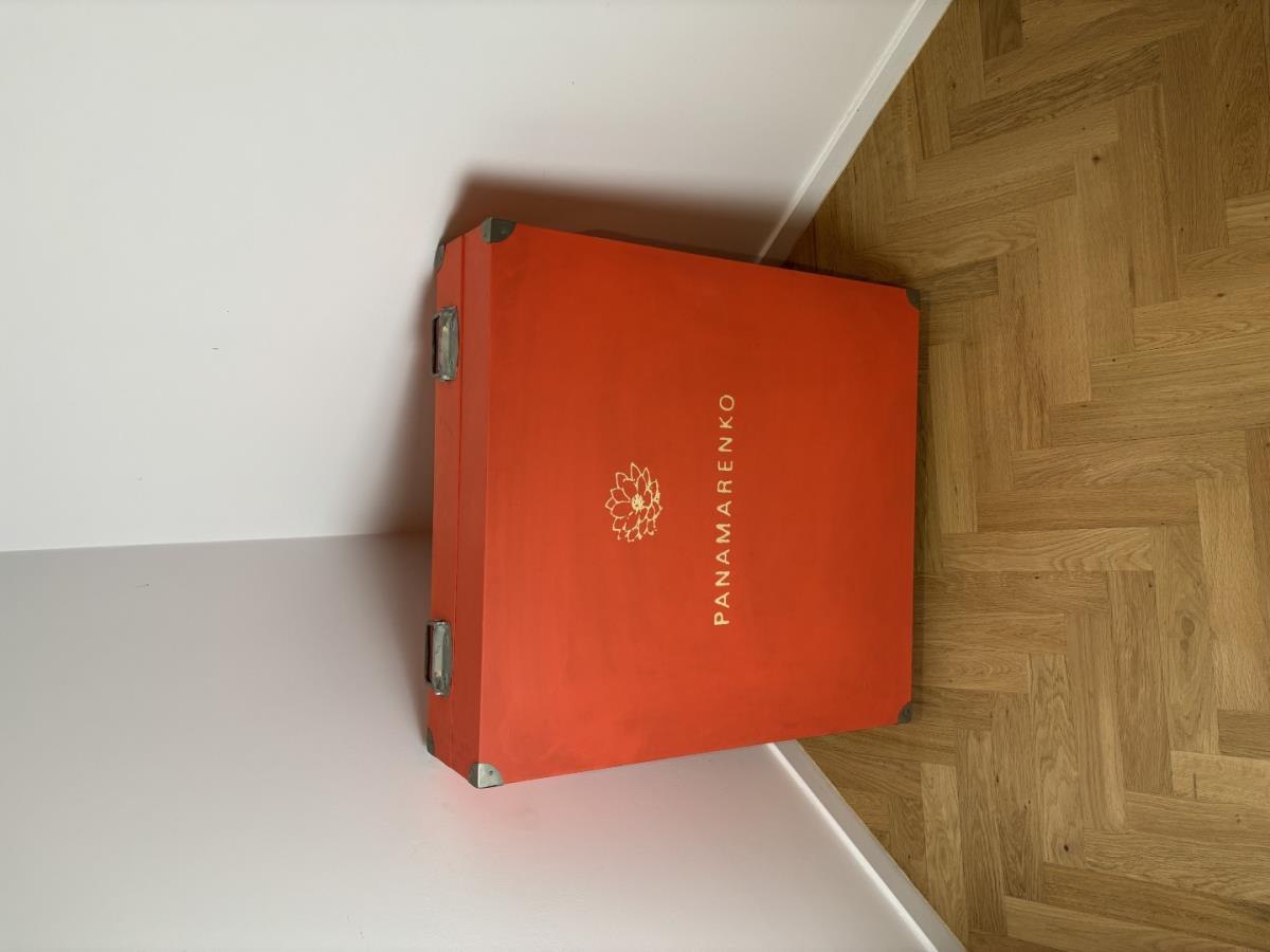 Unieke kist door Panamarenko met 'Efil Nailati' afgebeeld op de voorkant - Galerijprijs: 3500 87x83x21 cm