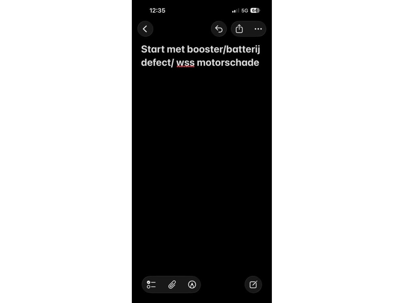 Start met booster/ Batterij defect/ Vermoedelijke motorschade ( Veel rook/ substantie uit de uitlaat)