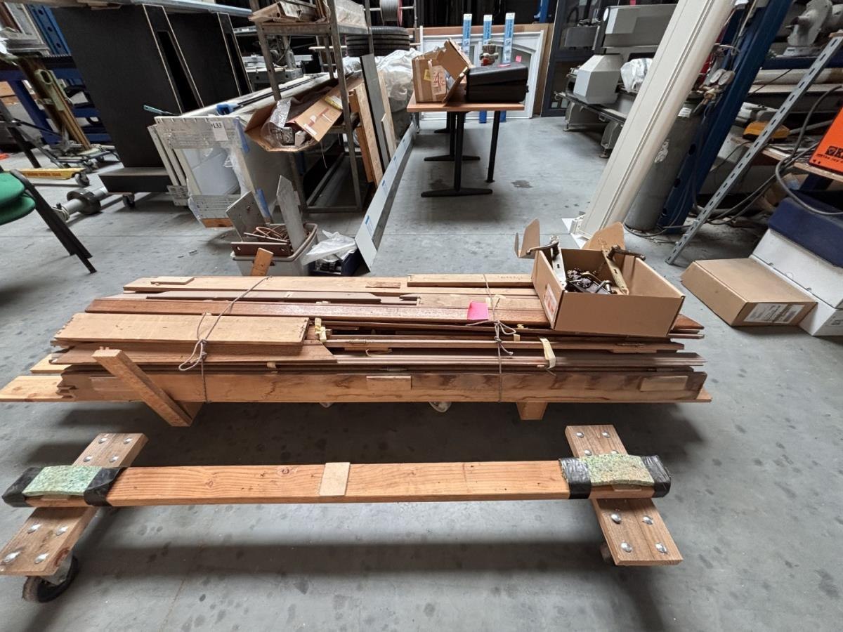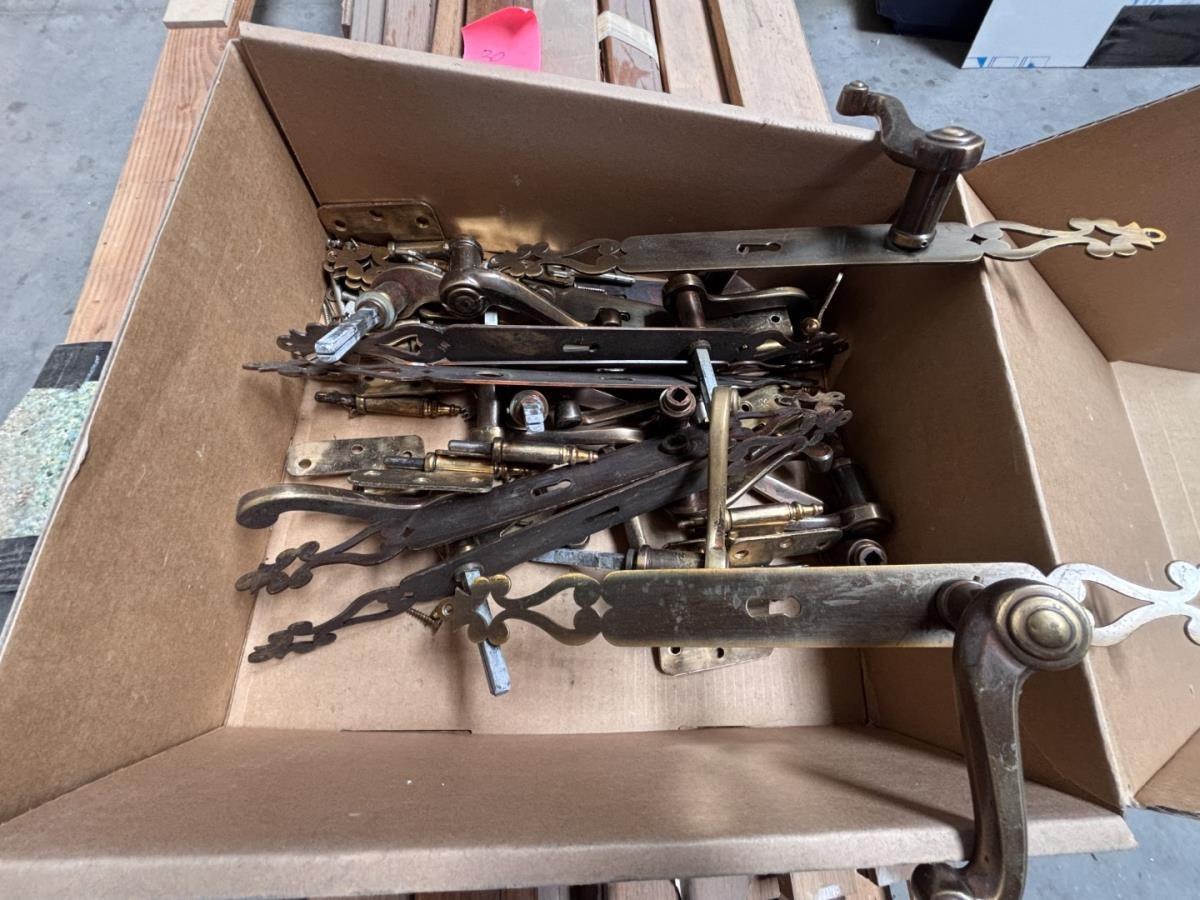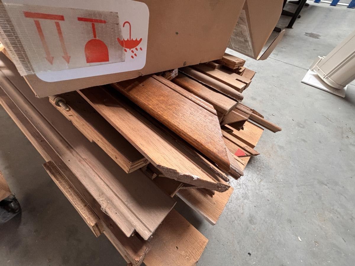 1 lot houten deurlijsten en div deurbeslag