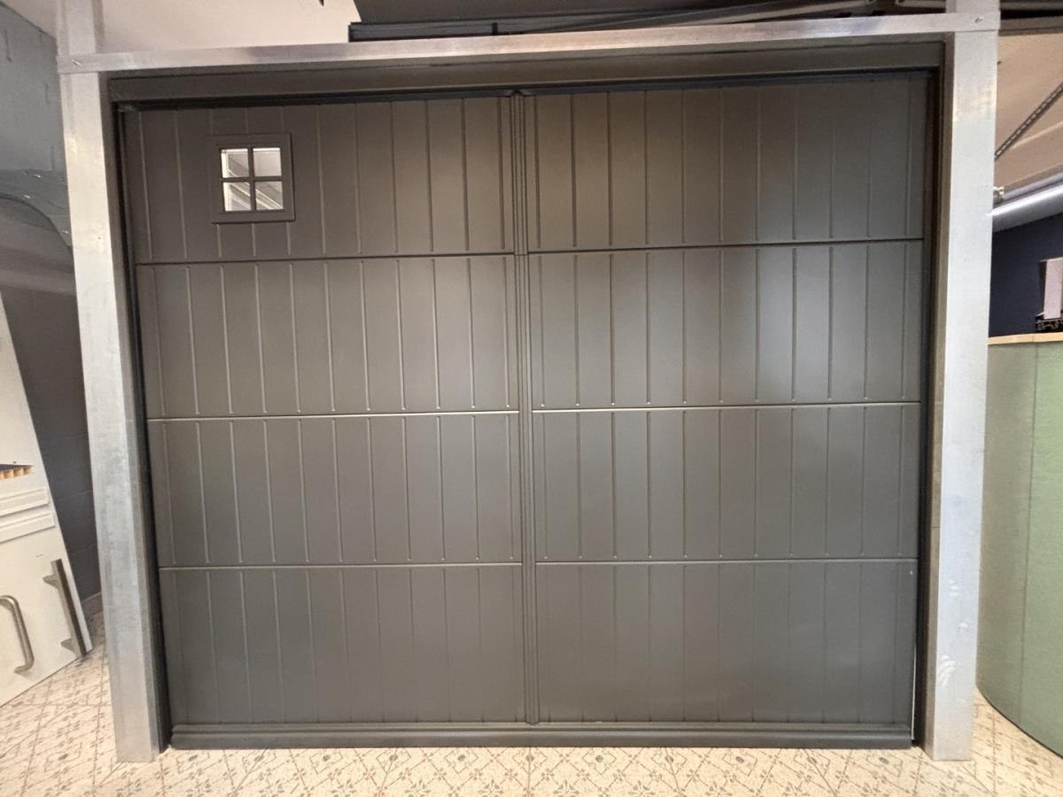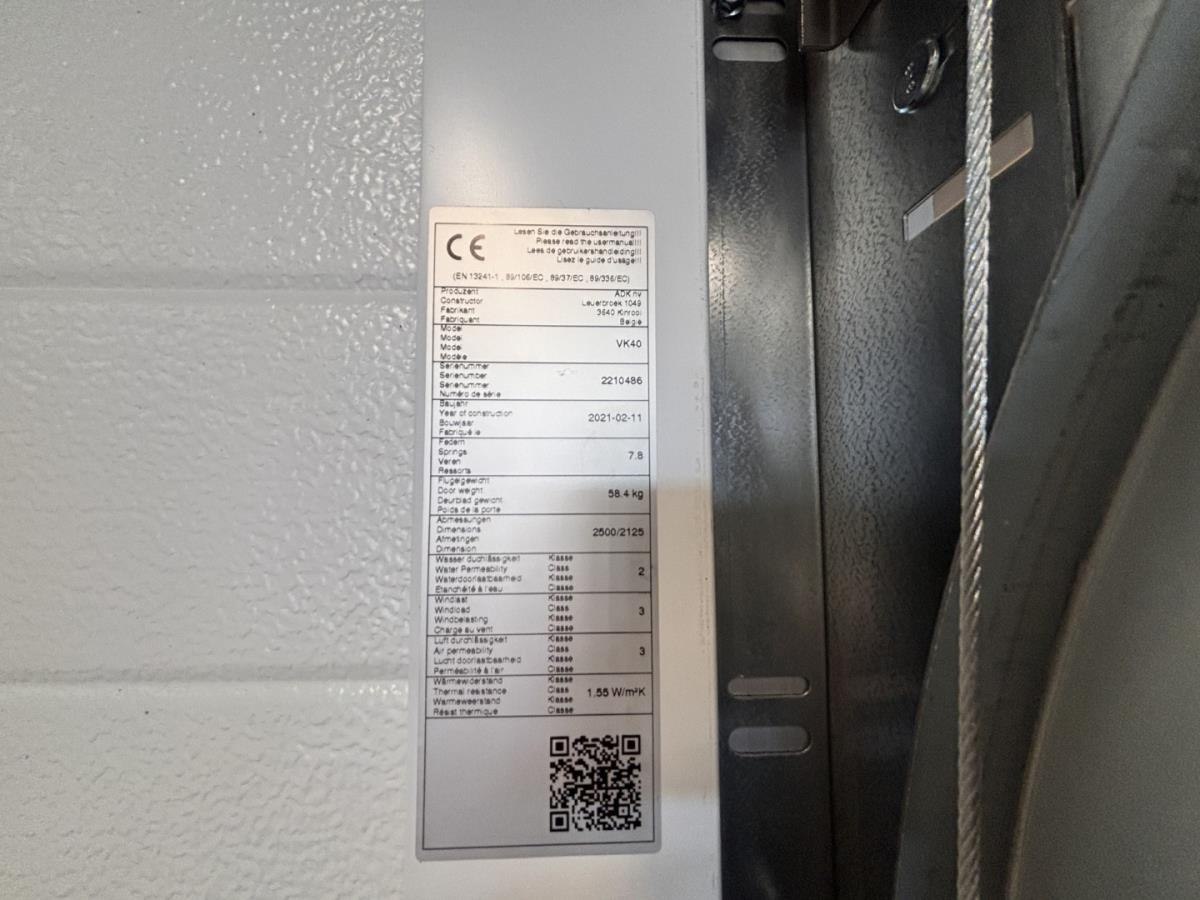 Fabrikant: ADK (Belgische makelij) RAL kleur: 7022 Afm plm incl geleiders: 2750x2125mm Incl geleiders, motor + 1 afstandsbediening Koper staat zelf in voor correcte maatopname tijdens de bezichtiging. Koper staat zelf in voor demonteren, transport en terug opbouwen van dit item.