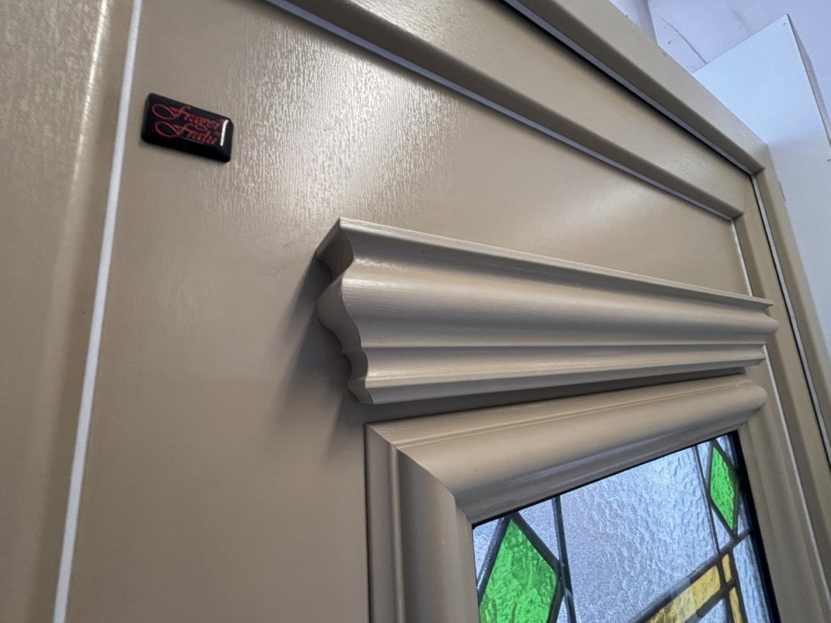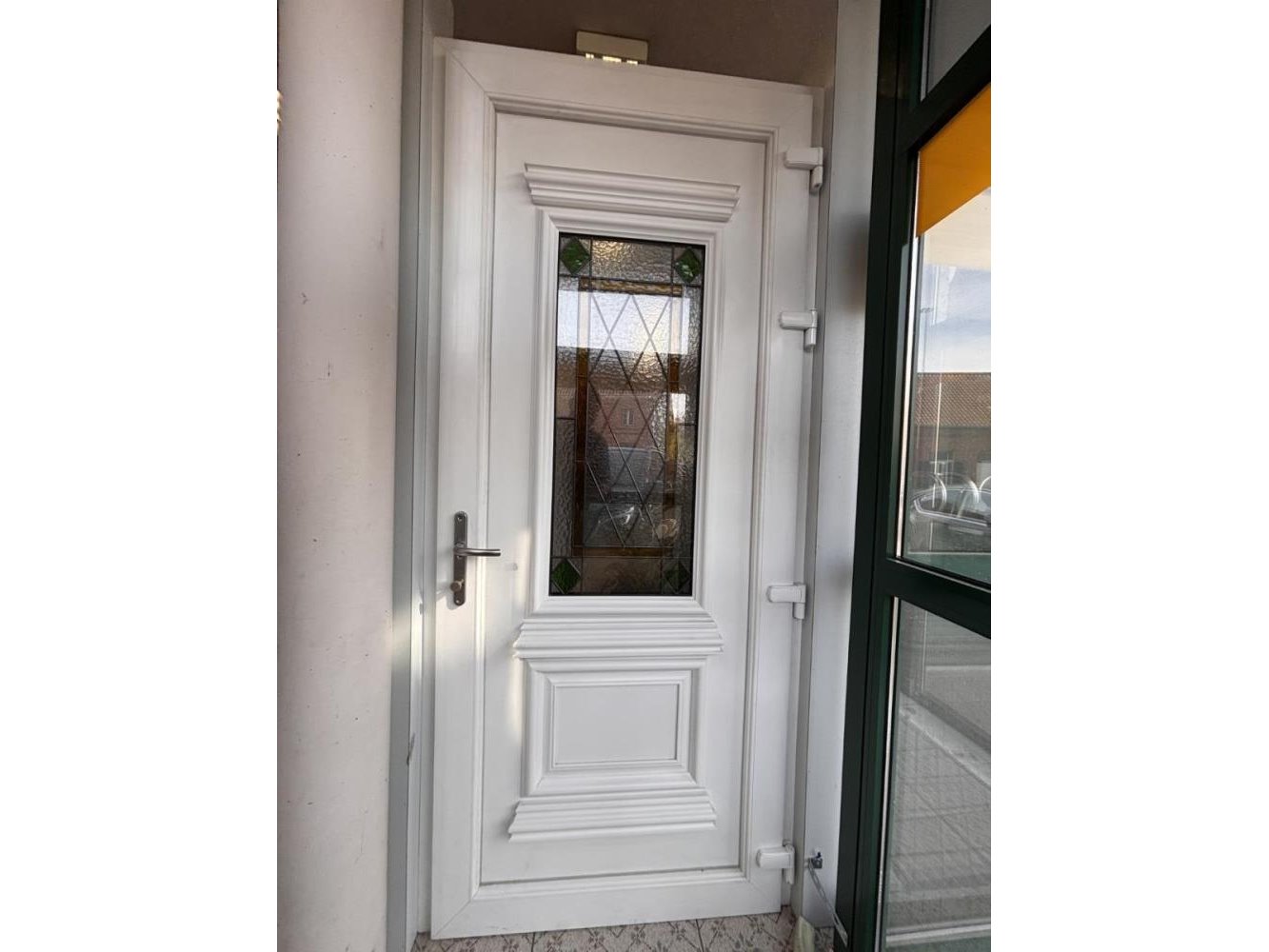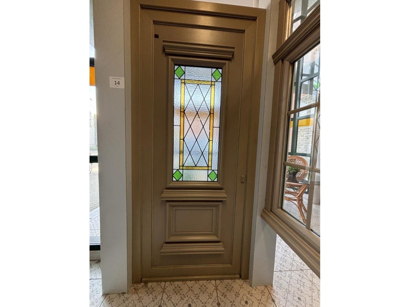 1 pvc voordeur met houtstructuur en glazen paneel frager