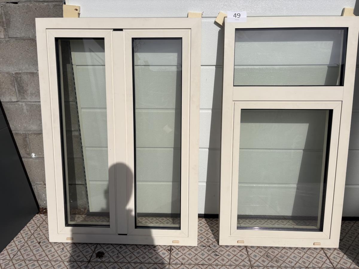 1 enkele + 1 dubbele raam RAL kleur: 9001 Afm enkele raam plm: 700x1300mm Afm dubbele raam plm: 900x1300mm Draai/kiep Koper staat zelf in voor correcte maatopname tijdens de bezichtiging. Koper staat zelf in voor demonteren, transport en terug opbouwen van dit item.
