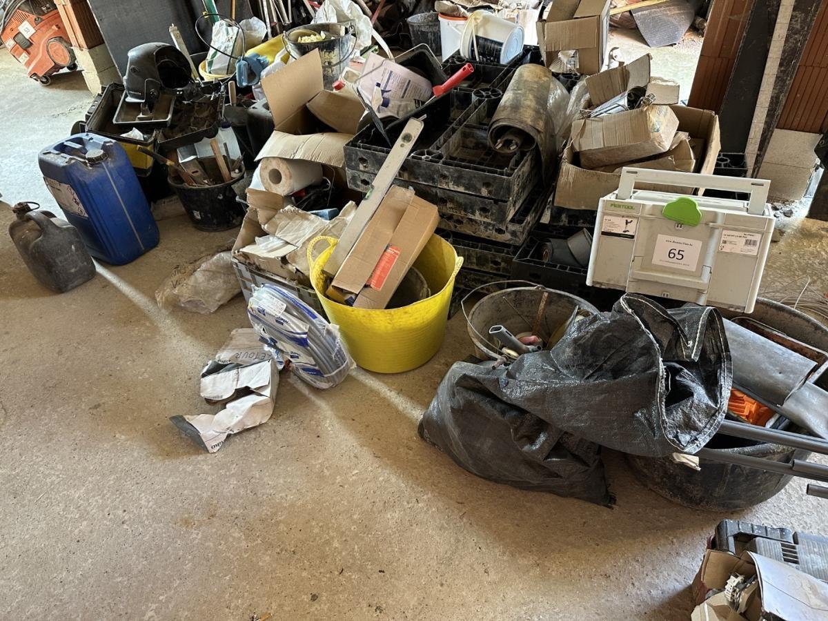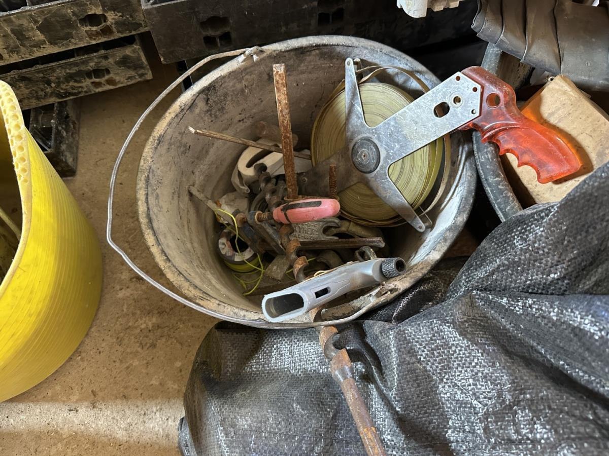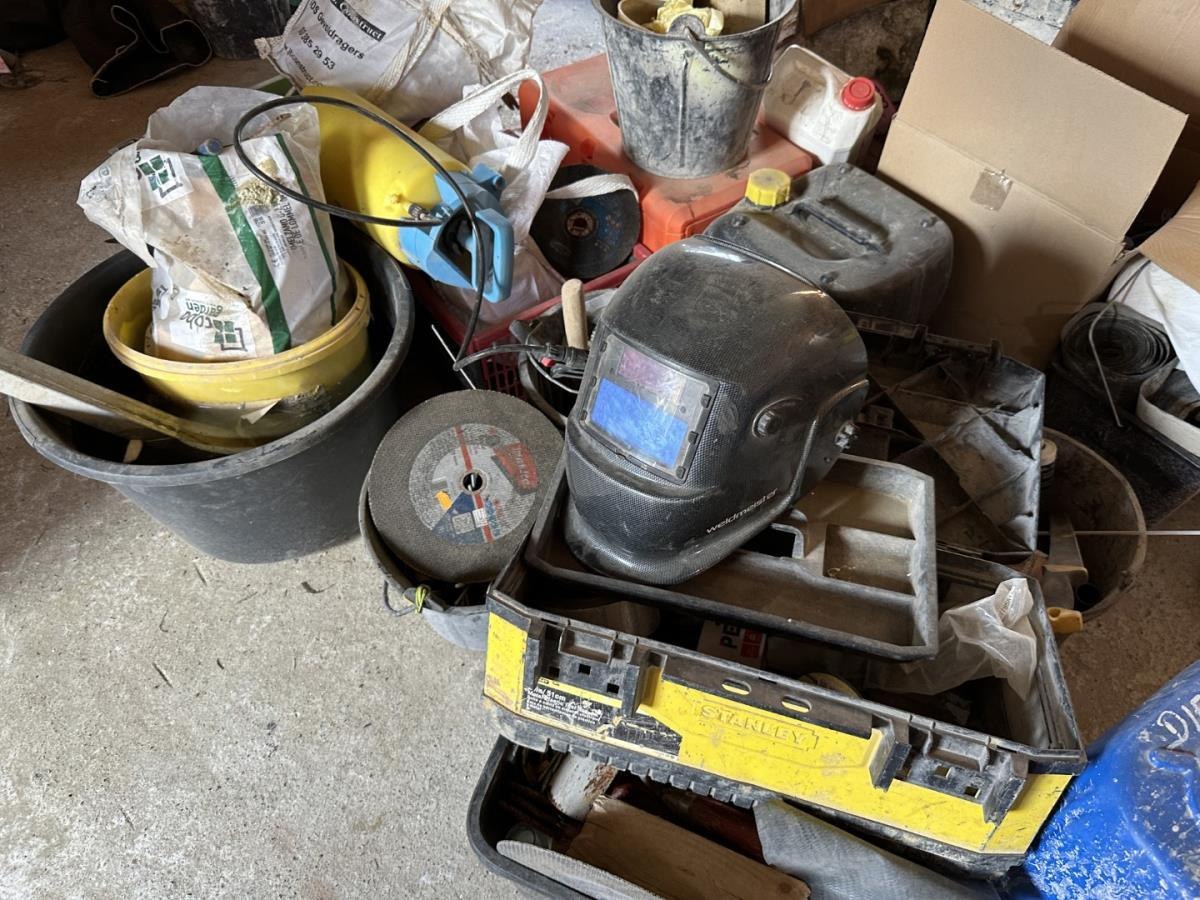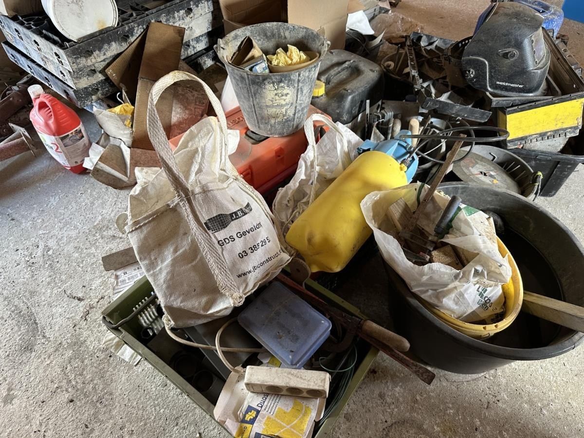Bu oa gereedschappen, mortelbakken, bekistingsmaterialen, lasbagetten, bidons, lashelm, ea