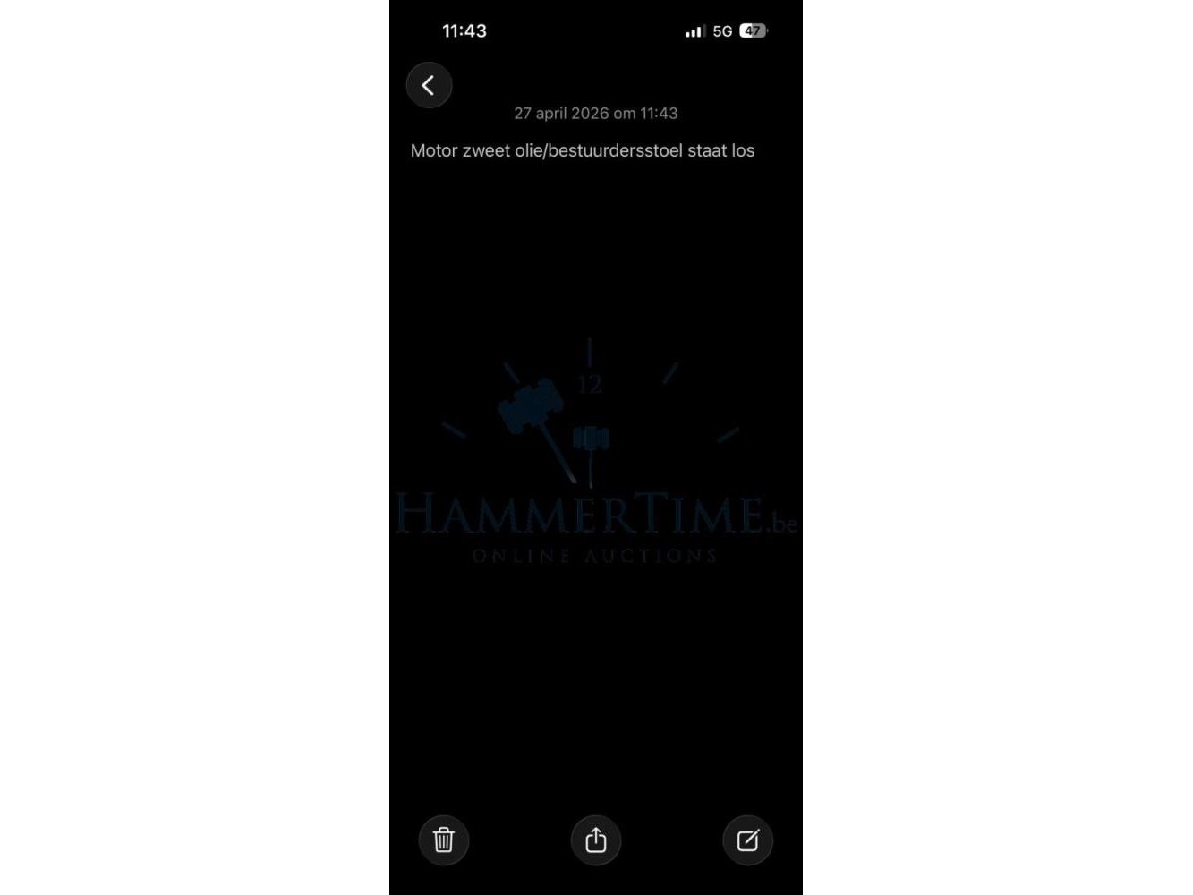 Wagen heeft onderhoud nodig/ motor zweet olie/ bestuurderstoel staat los