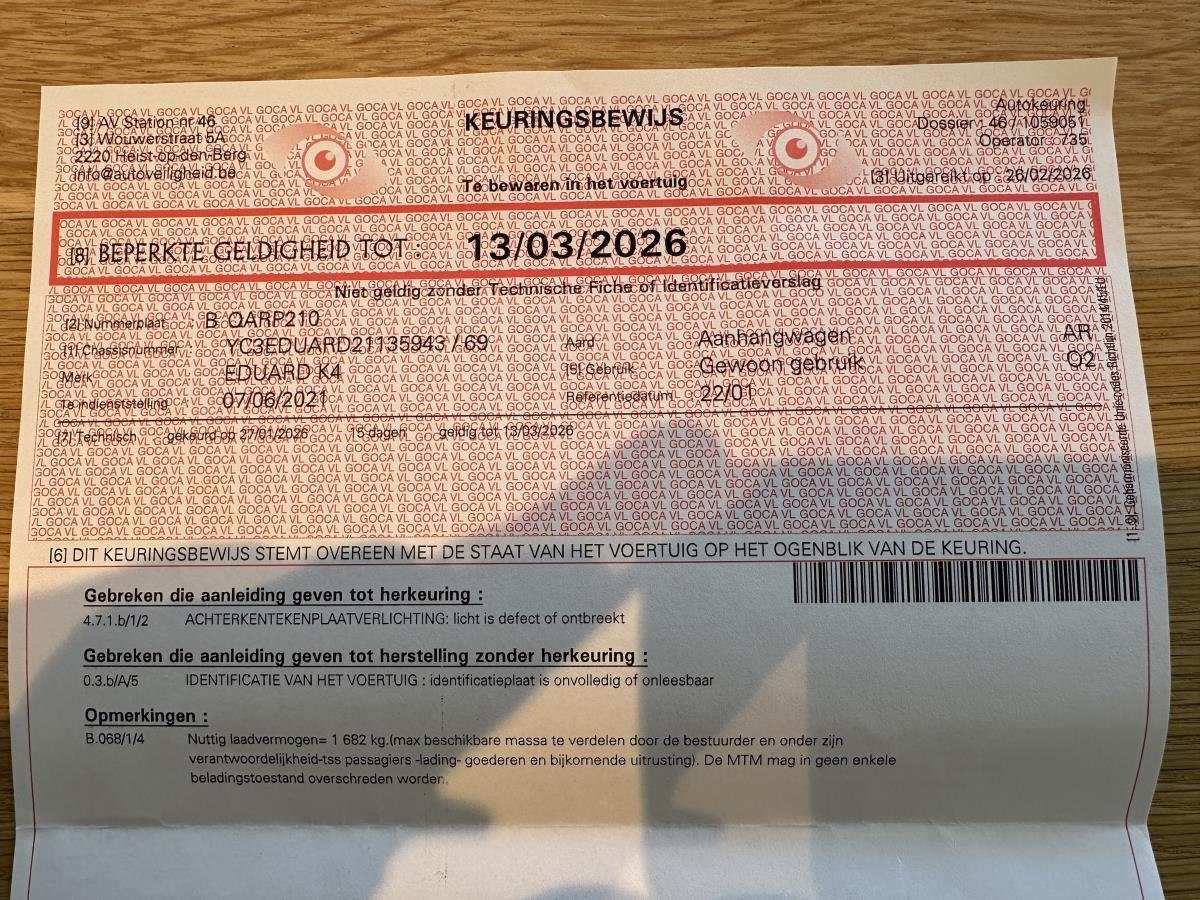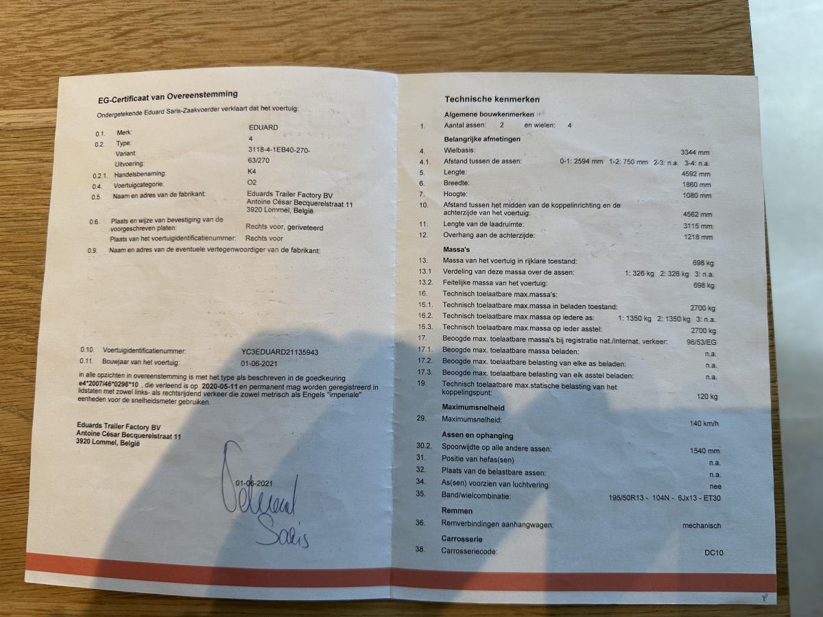Aanhangwagen eduard k4, 2021