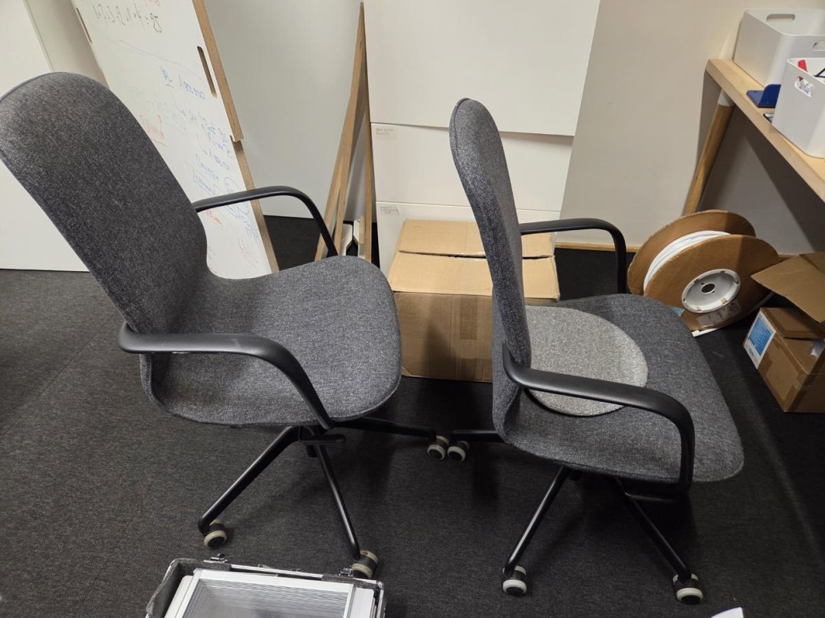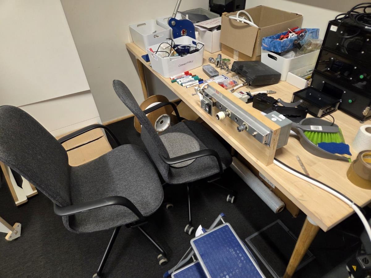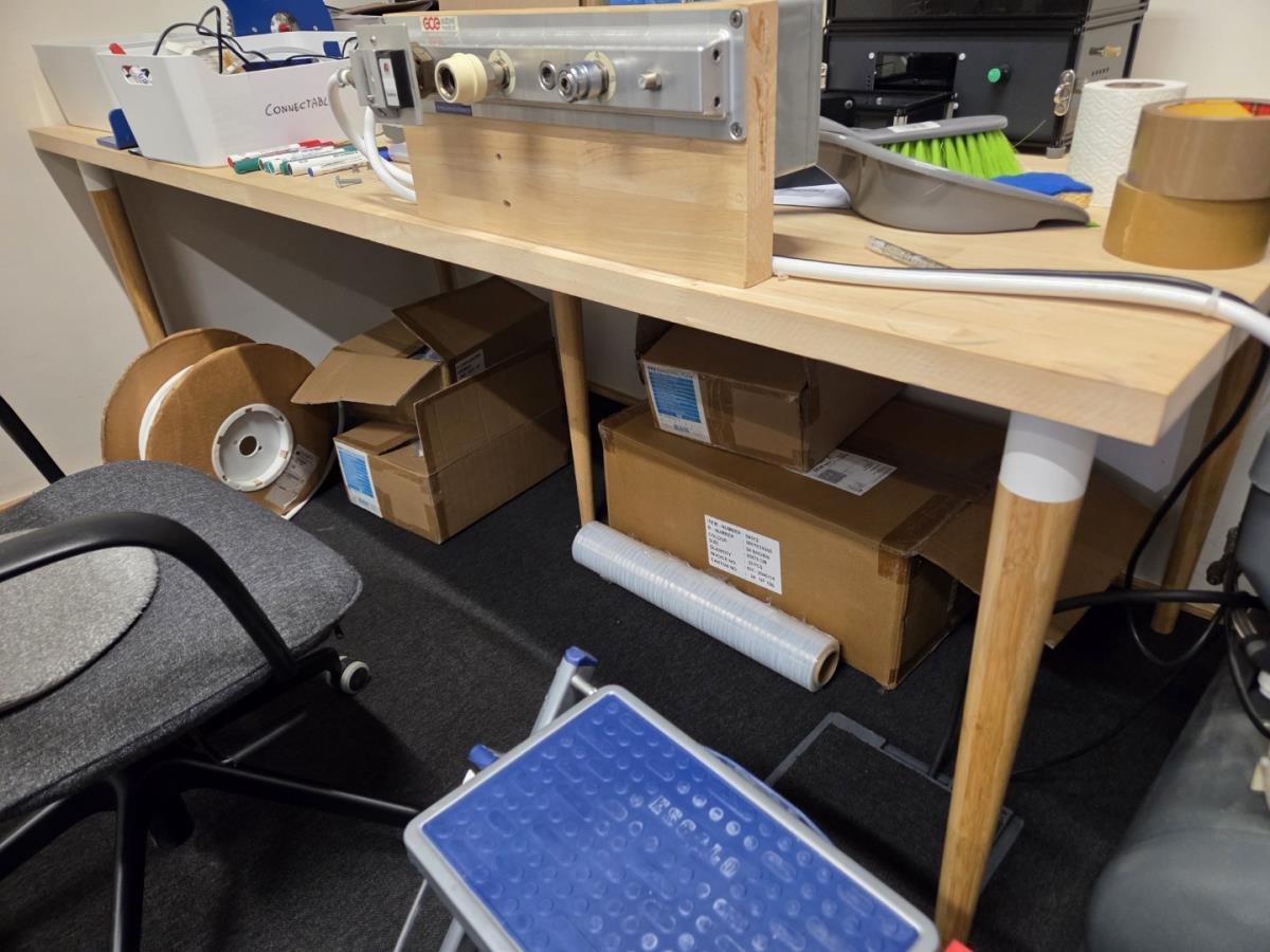 Incl tafel met testers, incl 2 verrijdbare typistestoelen