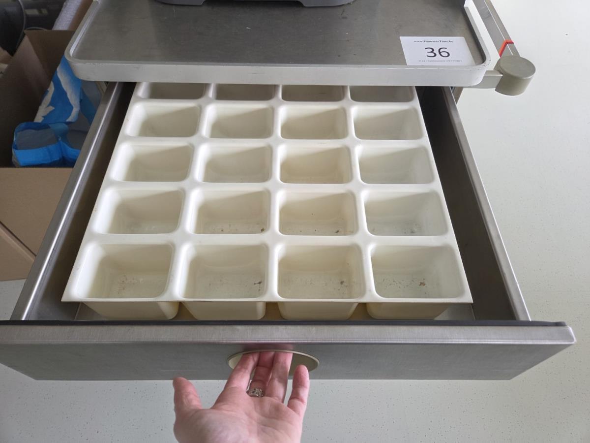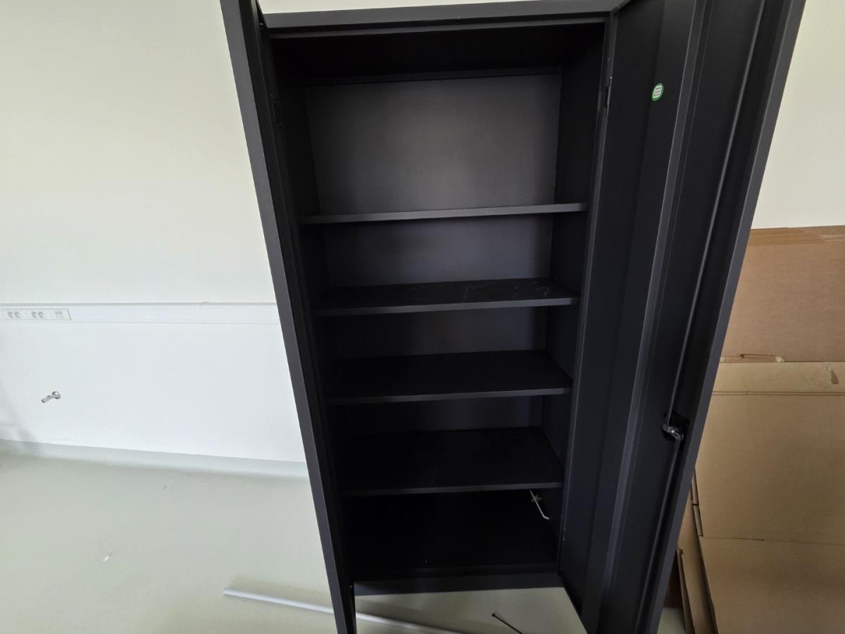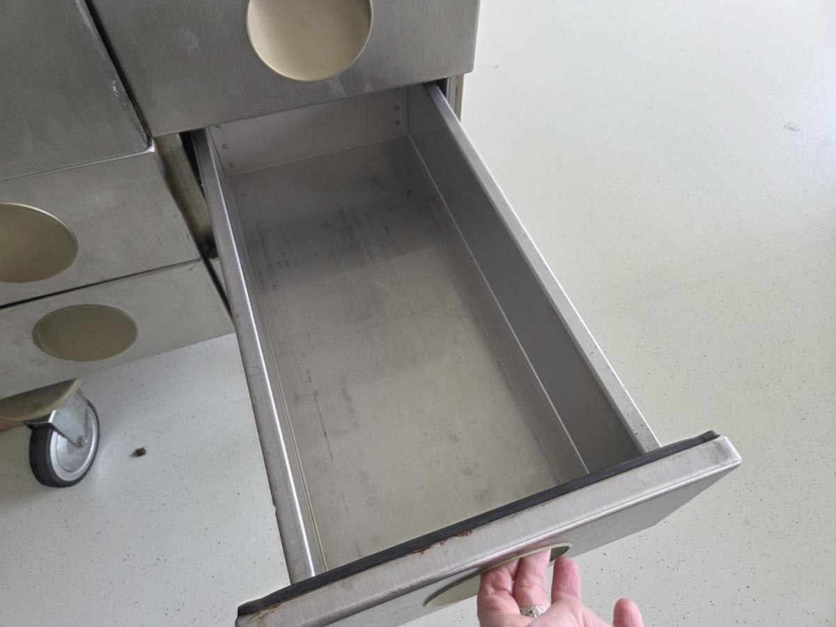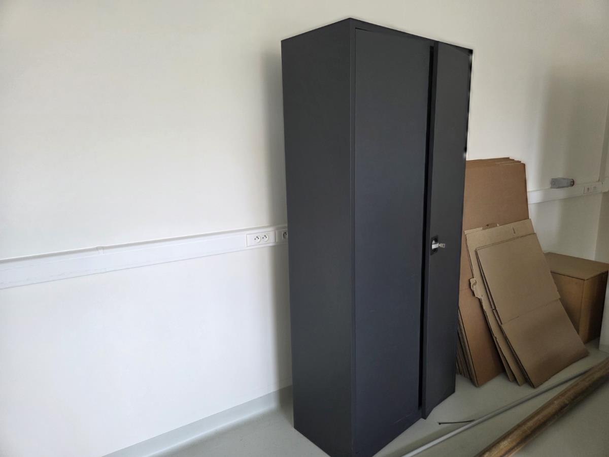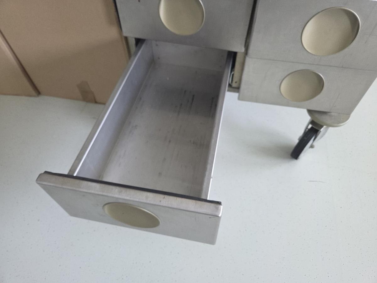 1 verrijdbare rvs materialenkast + metalen dossierkast