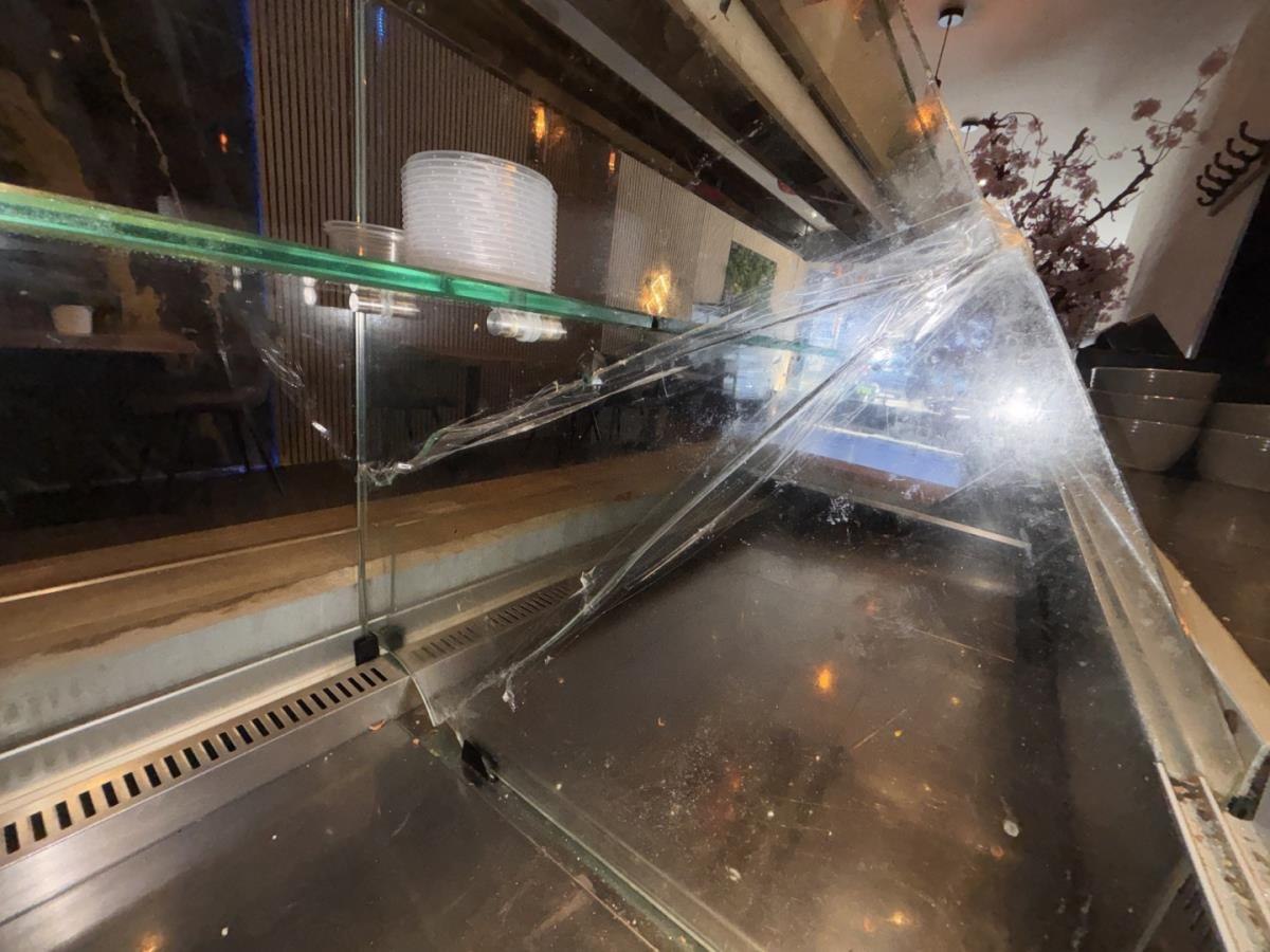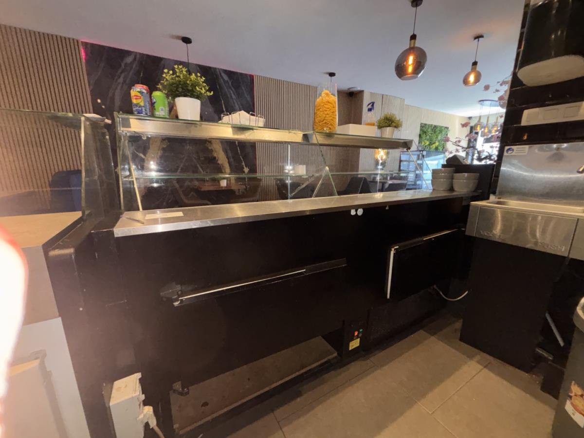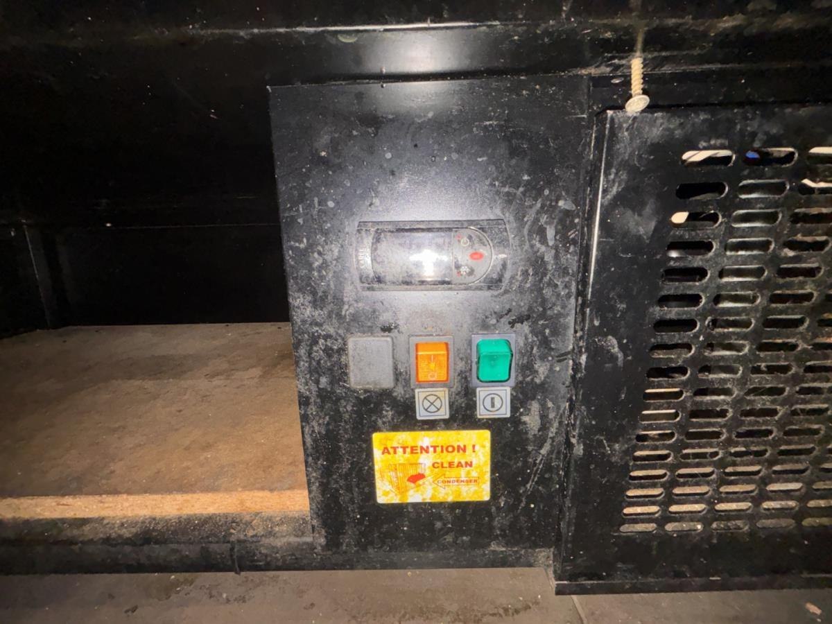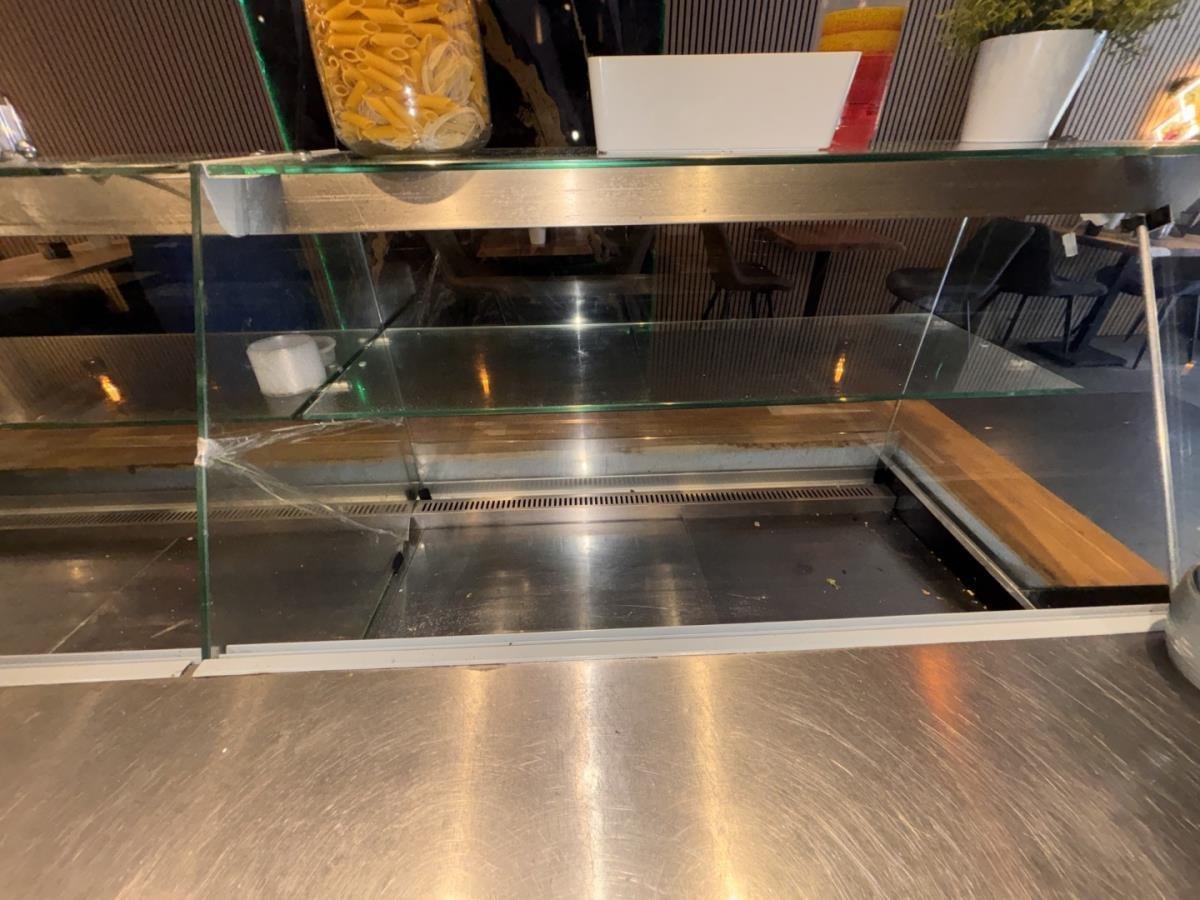 Bu 2 opbergvakken, glazen tussenschot gebarsten. Afm plm 1950x820x1300 mm. KOPER STAAT IN VOOR DE DEMONTAGE VAN HET KAVEL ZONDER SCHADE TE BEROKKENEN AAN HET PAND!!