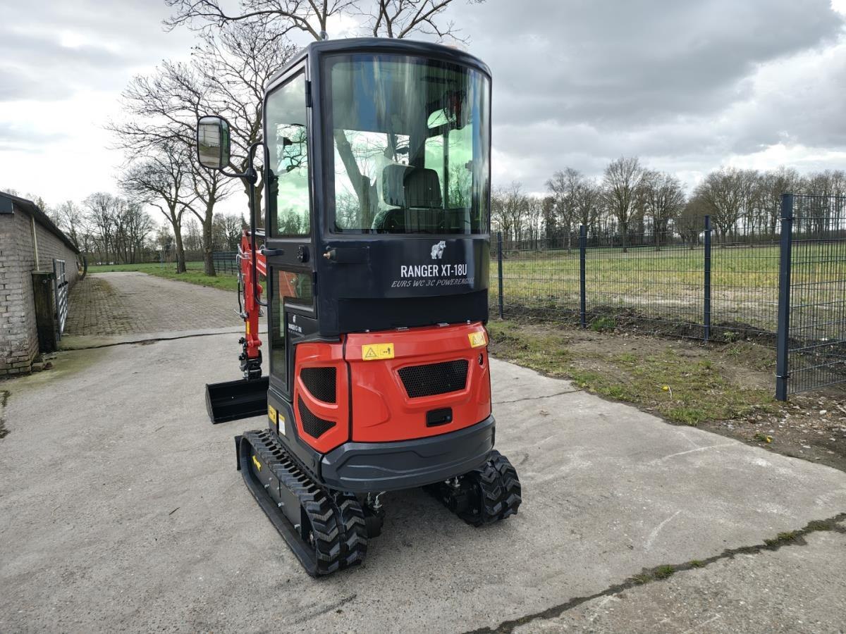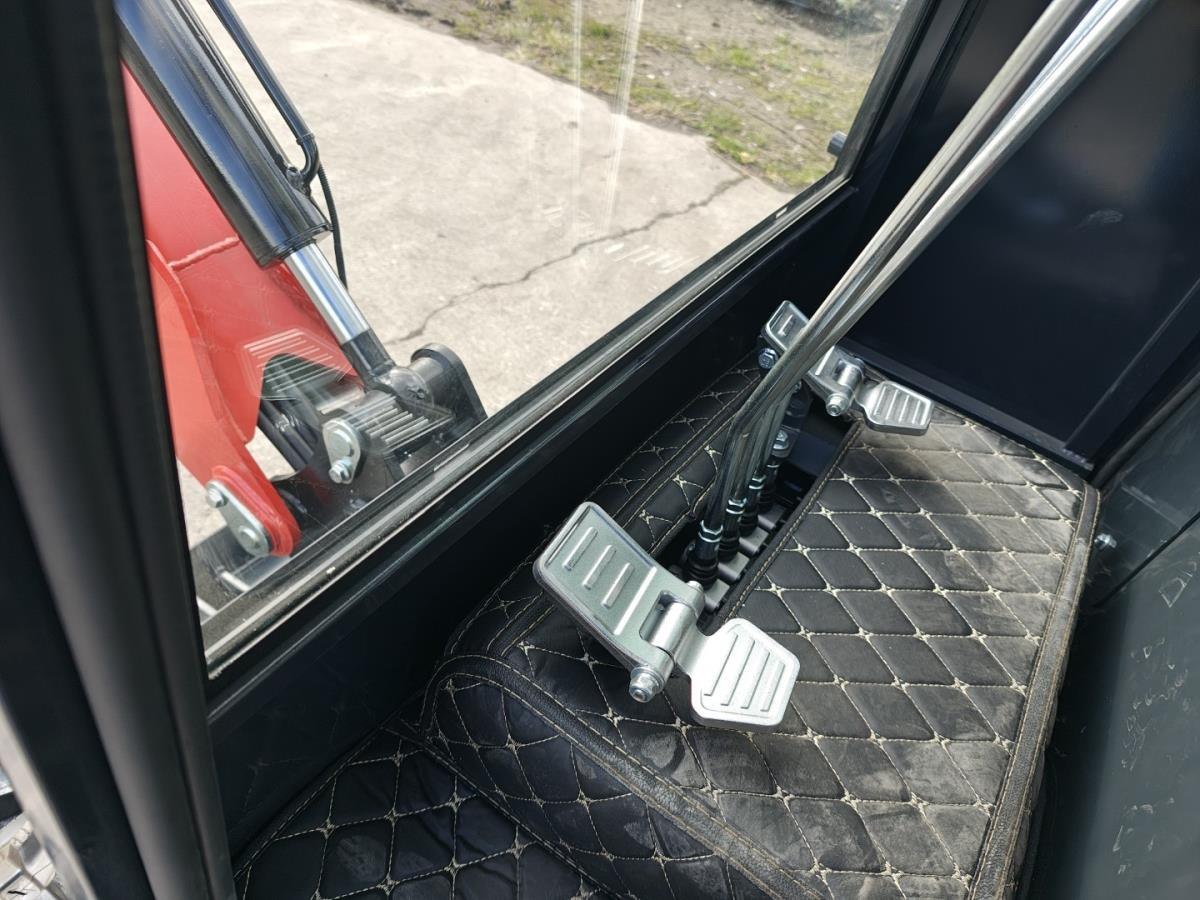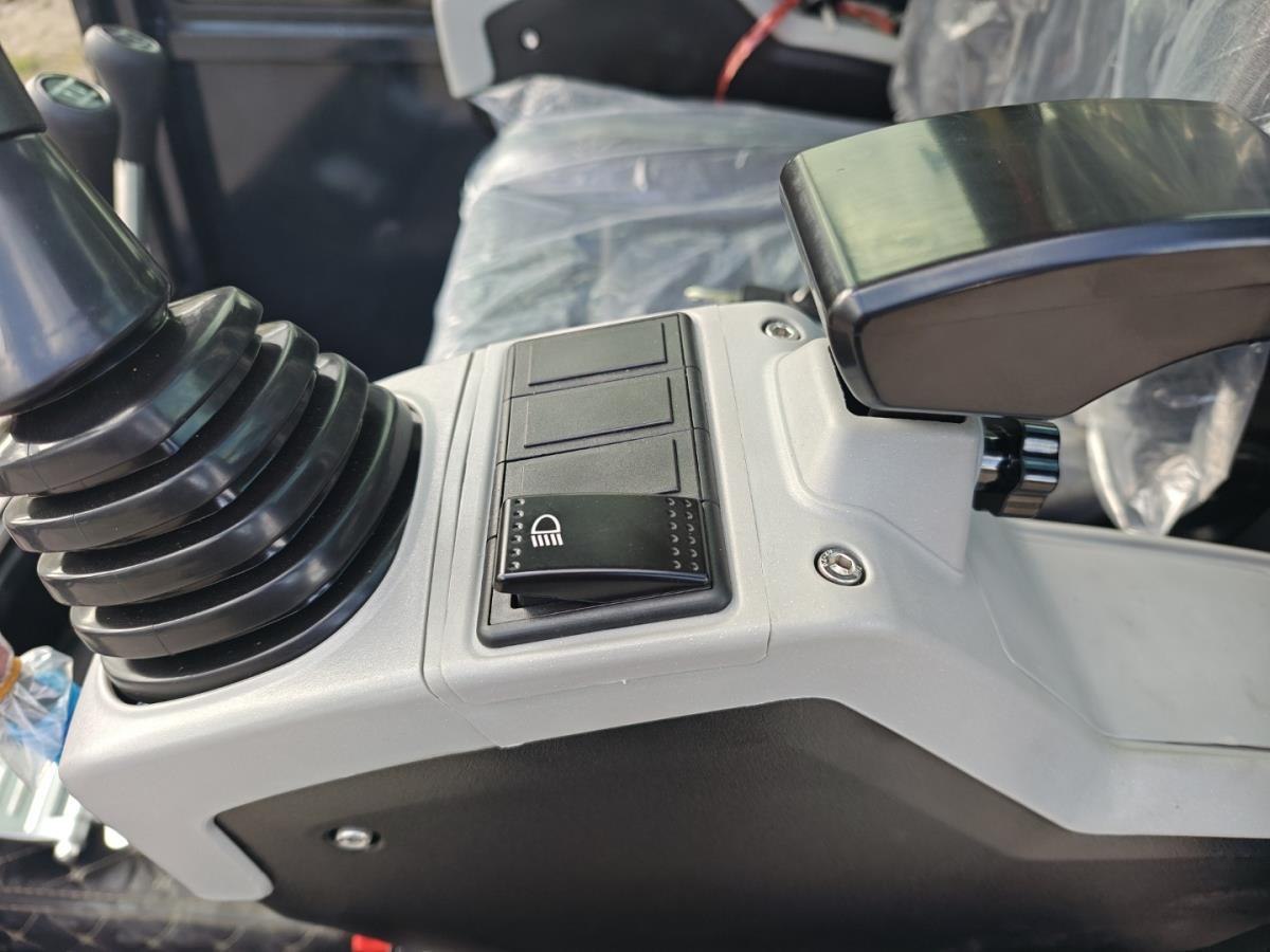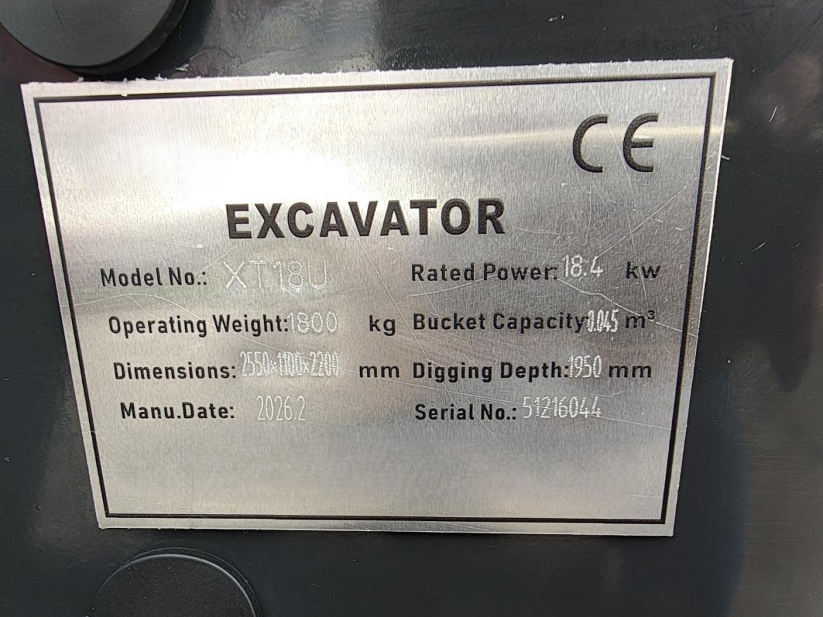 1800 kg minigraafmachine met 3 cilinder eur5 watergekoelde dieselmotor van 18.4KW / 25pk. uitgerust met servo bediening. Voorzien van cabine, zwenk giek met radius van 1500mm, dozerblad 1100mm, semi automatisch bakwisselsysteem, hydrauliekpomp 22L/min, opbreekkracht 10KN, Graafbak 80cm, tankinhoud 9.5 liter. ongebruikte machine