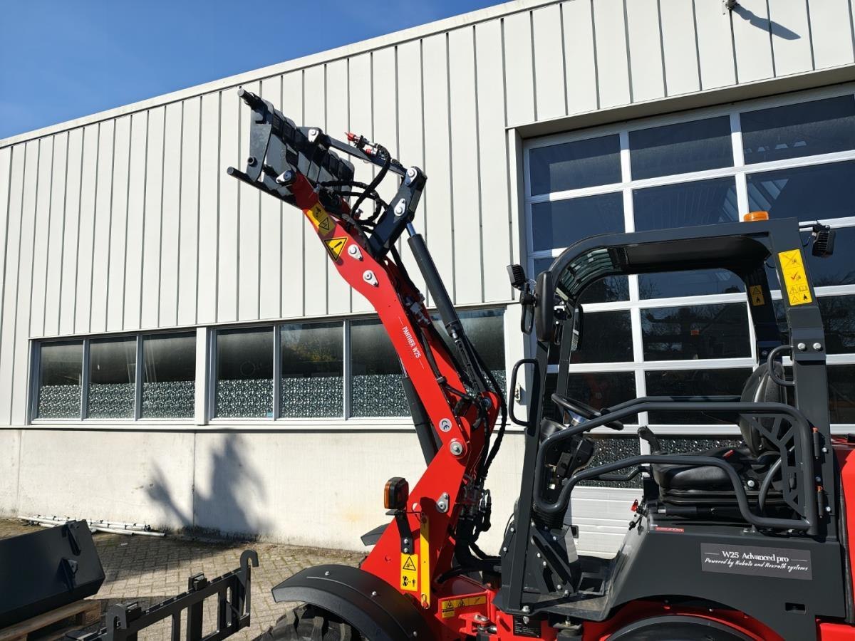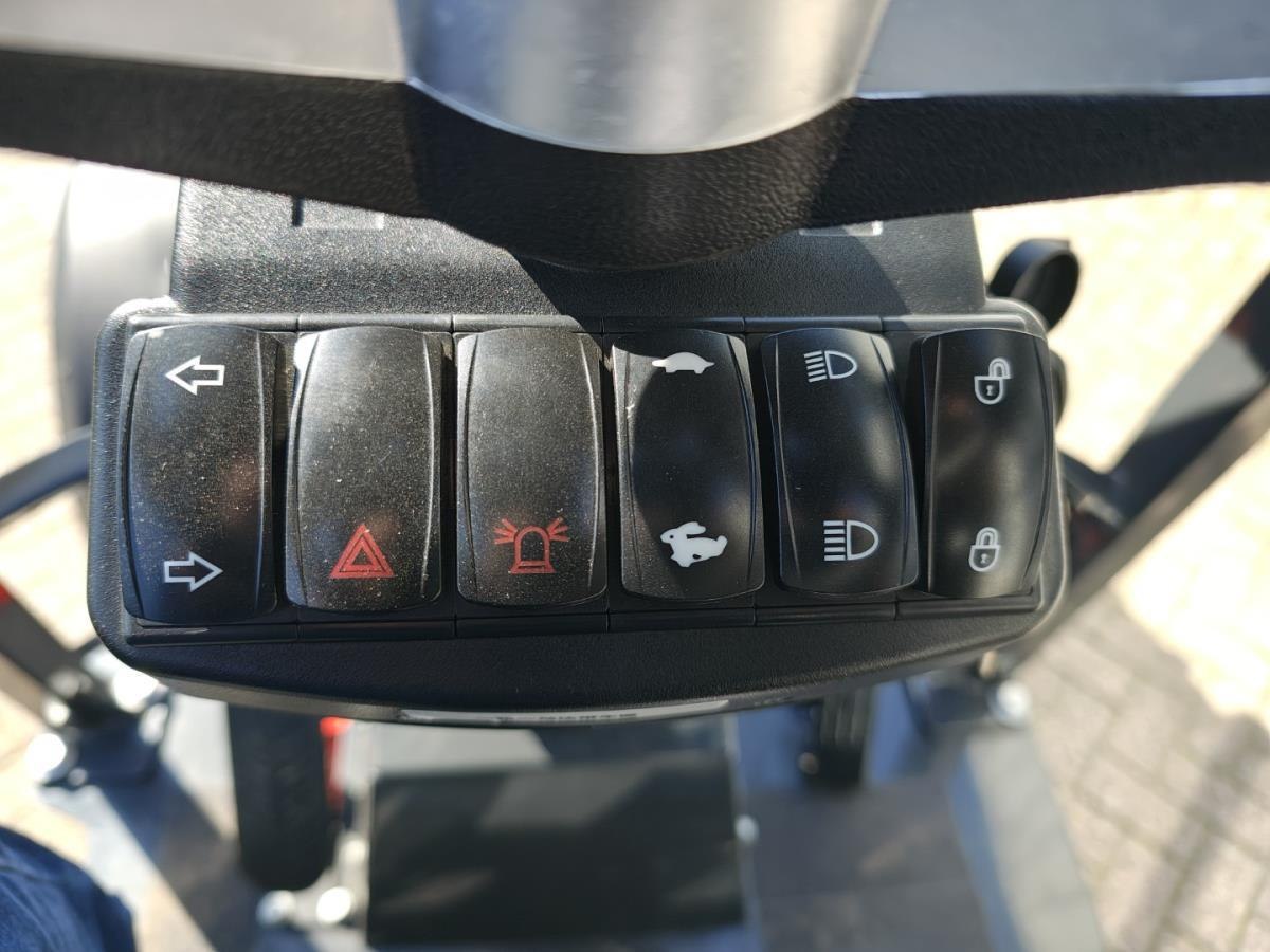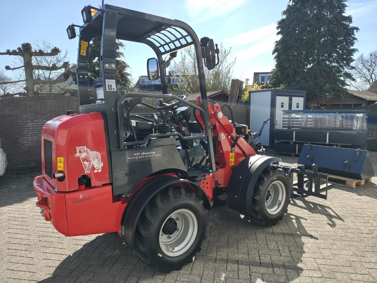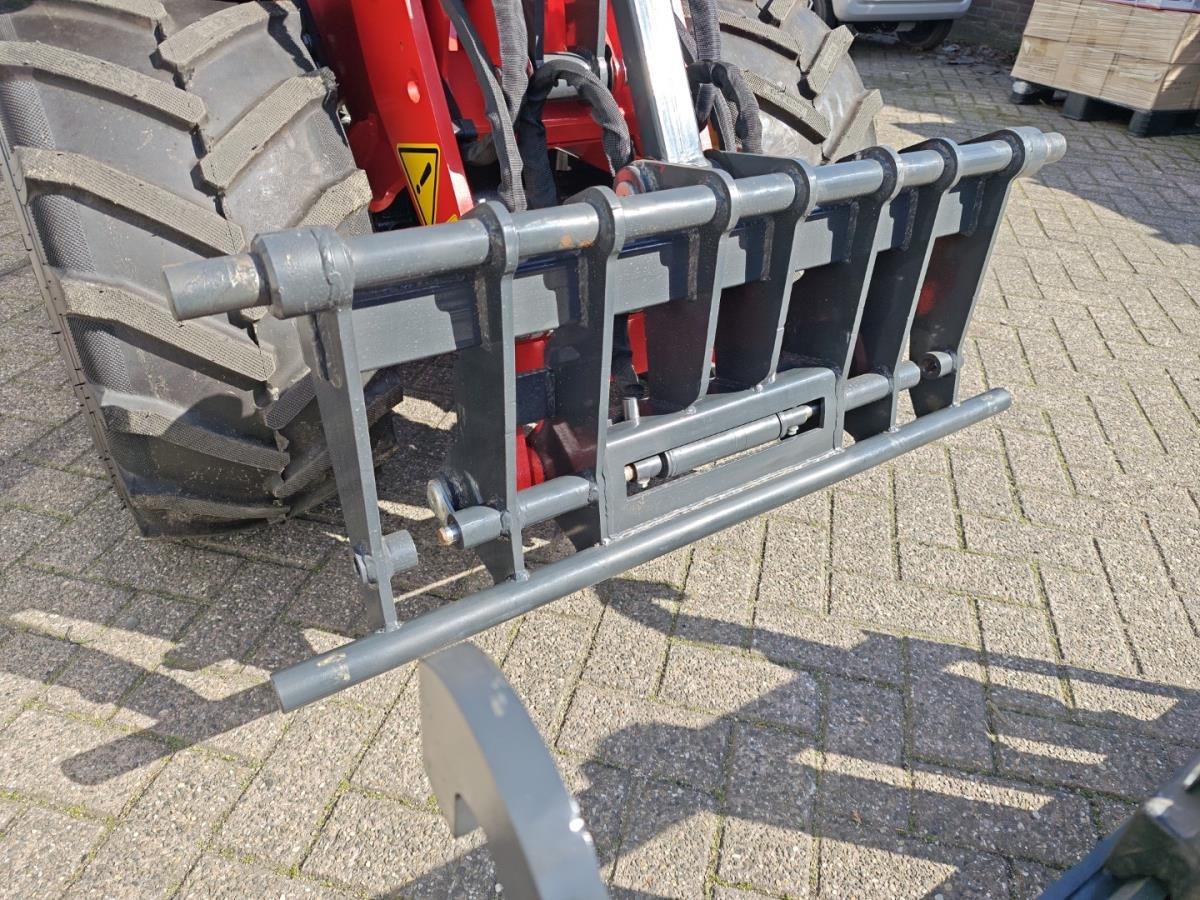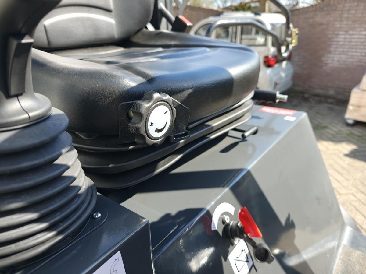 Miniloader aangedreven met Kubota V1505 4 cilinder EURO5 dieselmotor, watergekoeld, 18.4KW, inhoud 1,498 Liter, Advanced uitvoering; Hydrauliek uitgevoerd met Rexroth plunjerpomp en Rexroth Rijmotor, elektronische bedieningshendel met soft bediening en bediening van meerder functies tegelijk, Rijmotor met 2 snelheidsregelingen ook bedienbaar op rijhendel, LED werklampen voor en achter, Toyota verstelbare en geveerde zitting met elektronische sensor (schakelt motor uit na 20 sec ), Hydraulische snelkoppelingen voor aanpasdelen (euro aansluiting ),