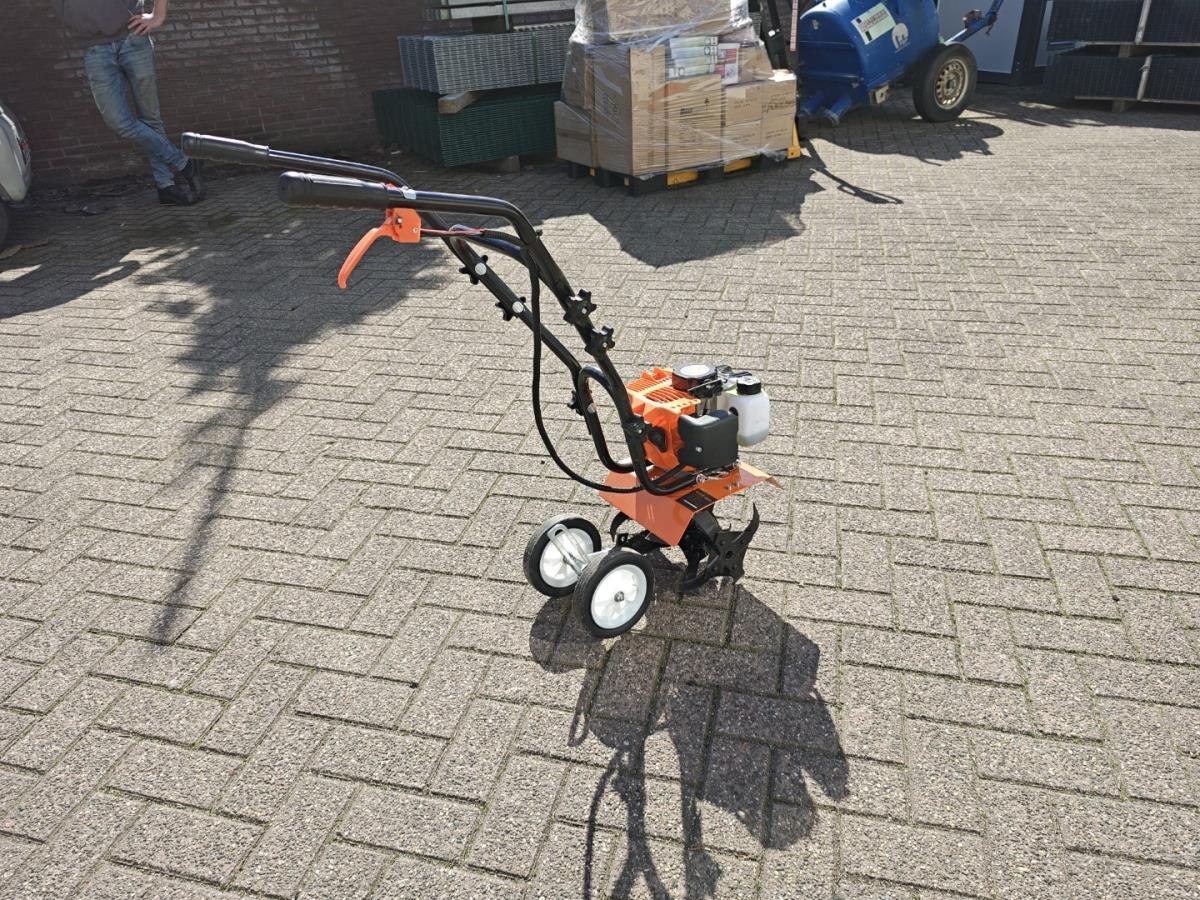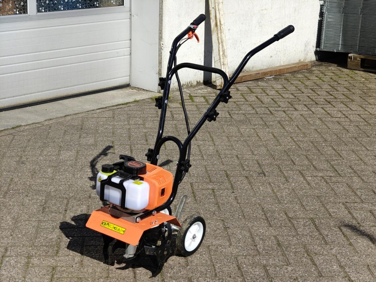 Gewicht 16 kg Afmetingen 80 × 40 × 70 cm Vermogen 52cc Stationair toerental 3000±200 toeren p/min Motor 2-takt Werkbreedte messen 300 mm Diepte messen 100-150 mm Inhoud brandstoftank 1.2 liter Type brandstof Euro 95 Mengverhouding 1:25 Type olie transmissie olie Transmissie vooruit/achteruit Materiaal grondfrees gepoedercoat staal Materiaal messen gehard staal Gewicht grondfrees 14 kg Keurmerken CE