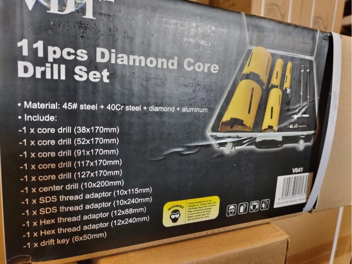 Diamant kerborenset 11 delig, 38 tot en met 127mm diameter, incl hulpstukken, nieuw in setvige koffer