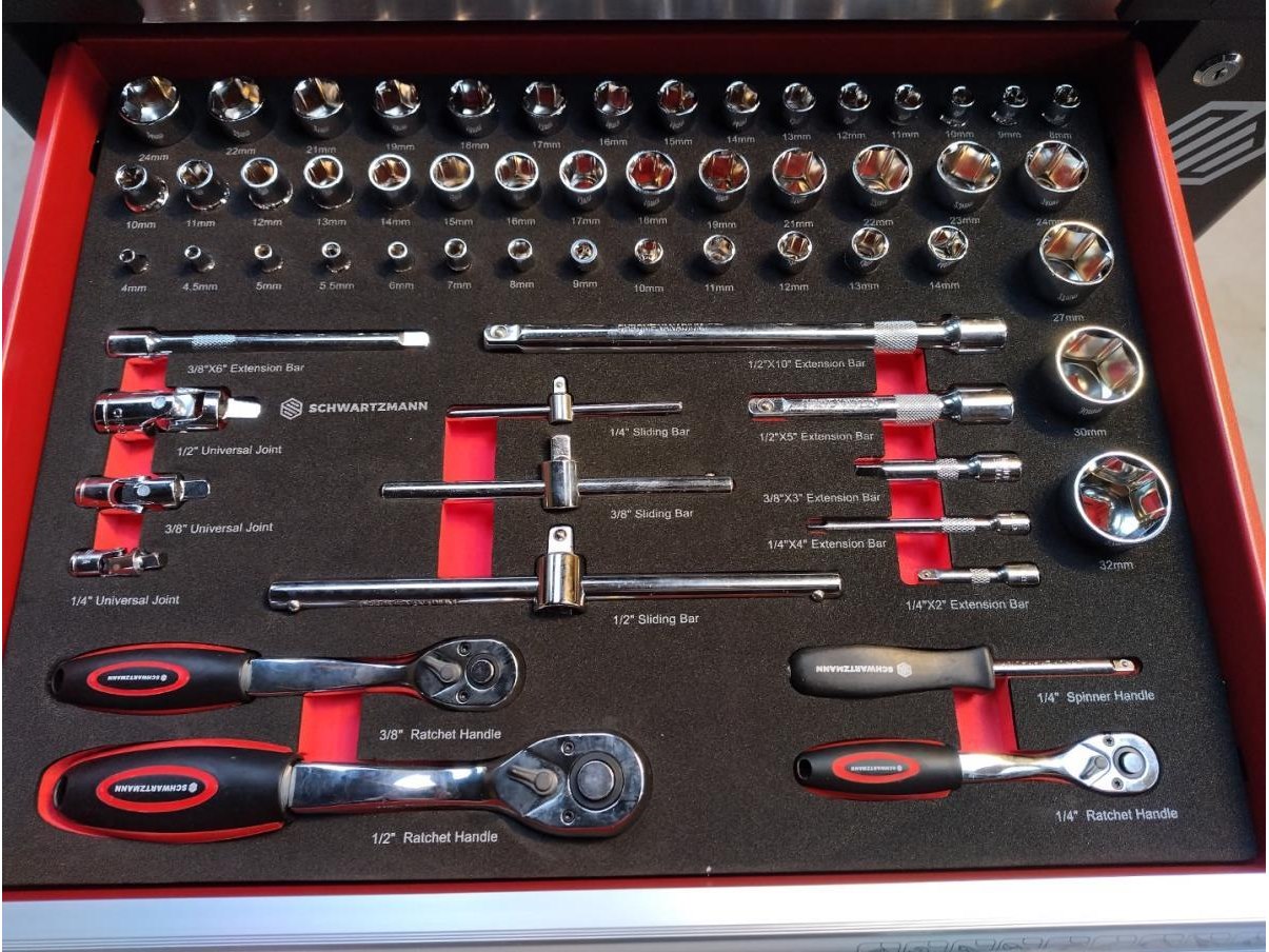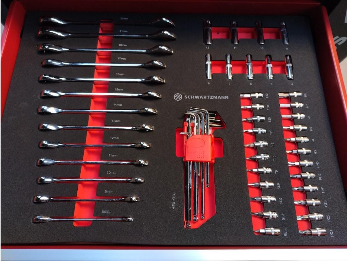 Schwartsmann gereedschapswagen 6 laden waarvan 4 gevuld met gereedschap. Nieuw