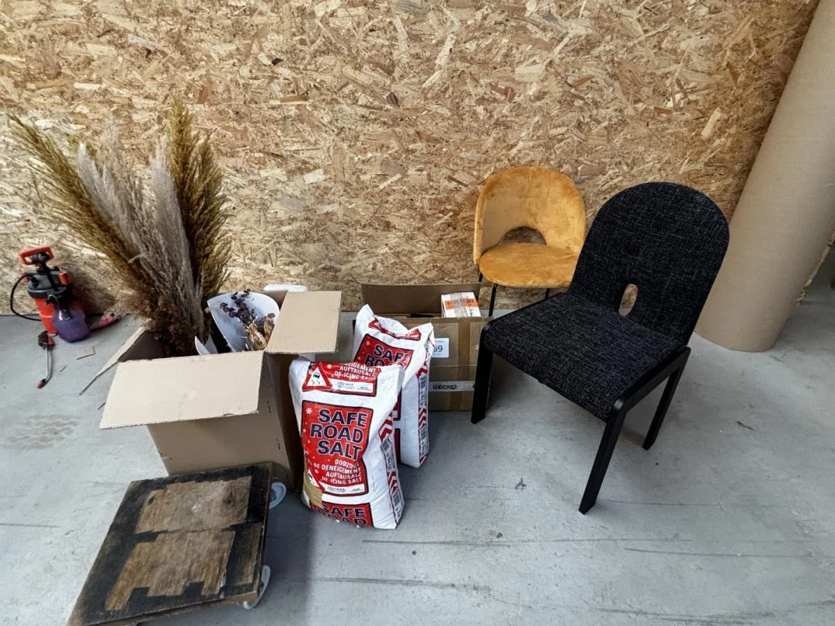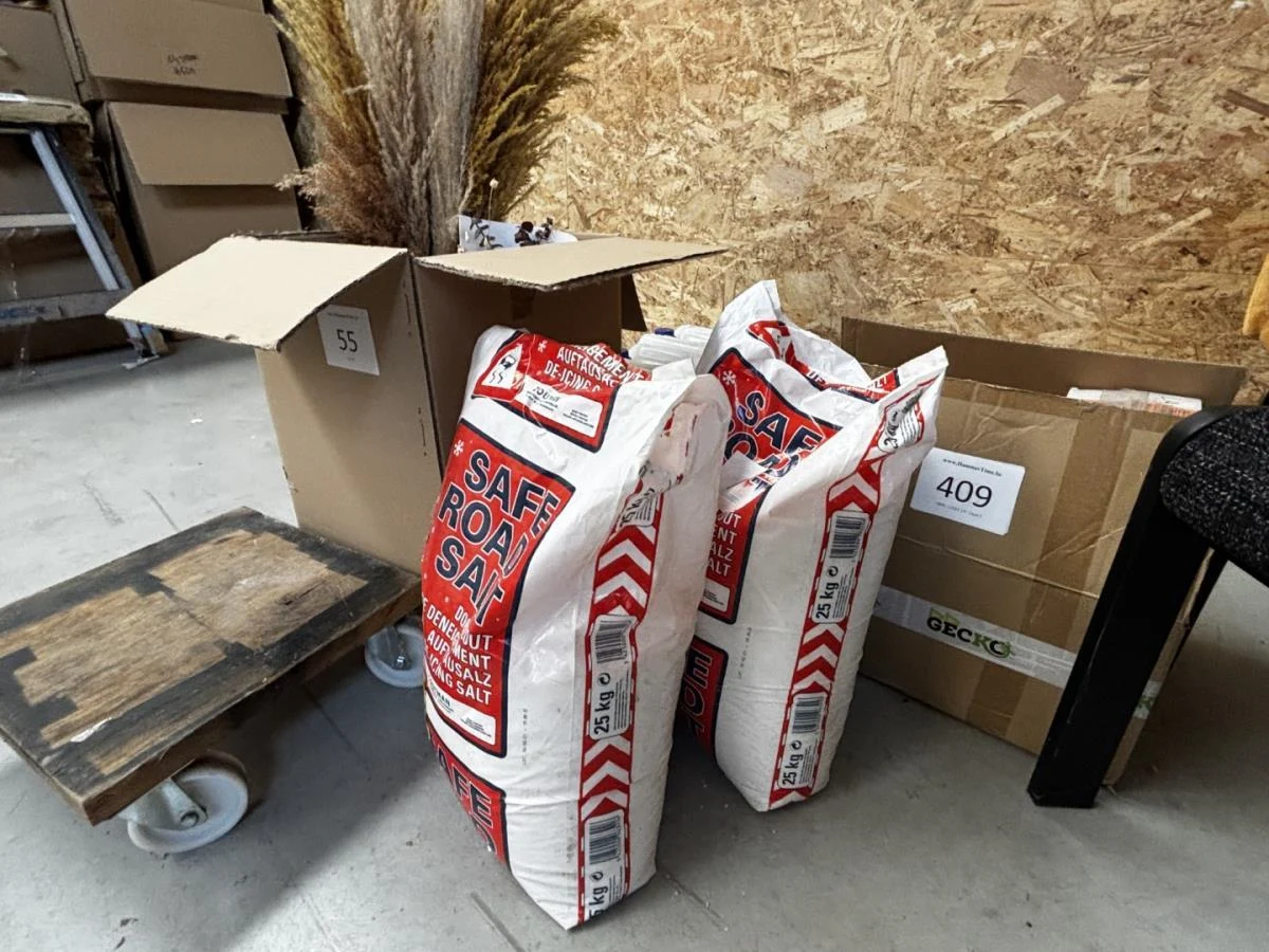 1 Lot diversen wo Lades, verlichting ea, 2 zakken strooizout, 2 bidons AD BLUE
