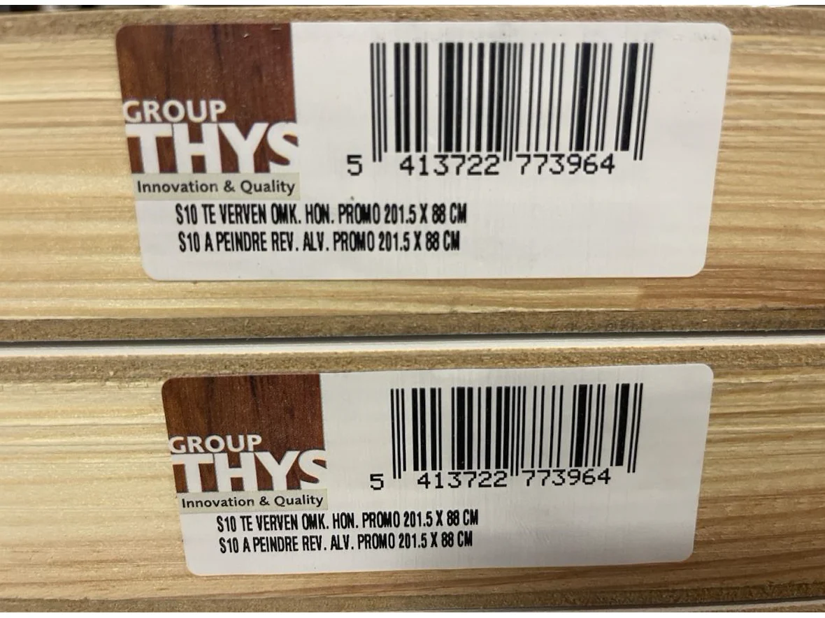 Witte schilderdeur THYS Kern : Honingraat (lichte deur) Scharnieren en slot : voorgfreesd Krukgat/sleutegat : voorgeboord Omkeerbaar (links/rechts) 2 stuks (nieuw) 201,5 x 88 x 4cm Deurbeslag en deurkast NIET inbegrepen NIEUW