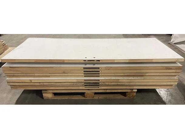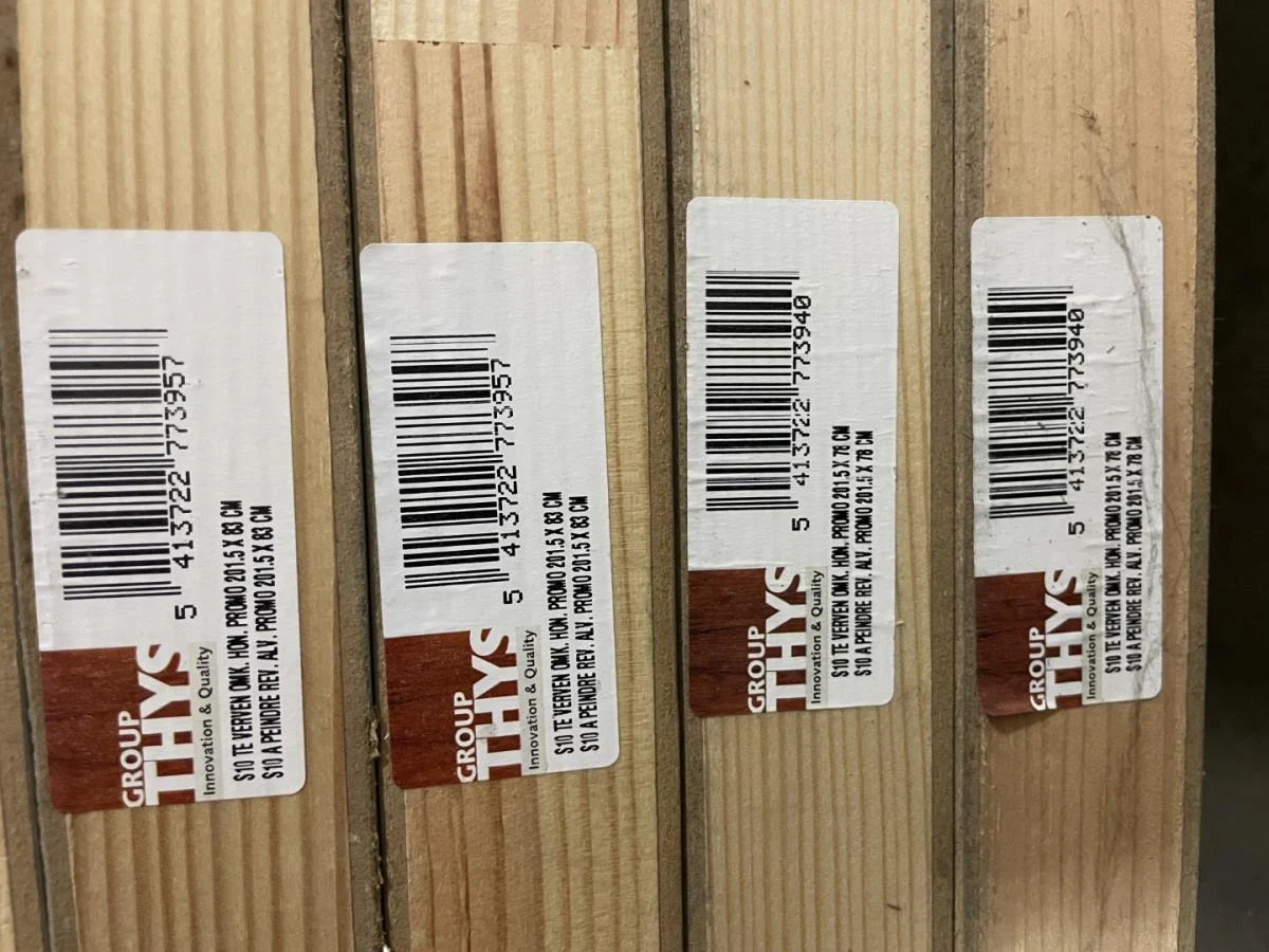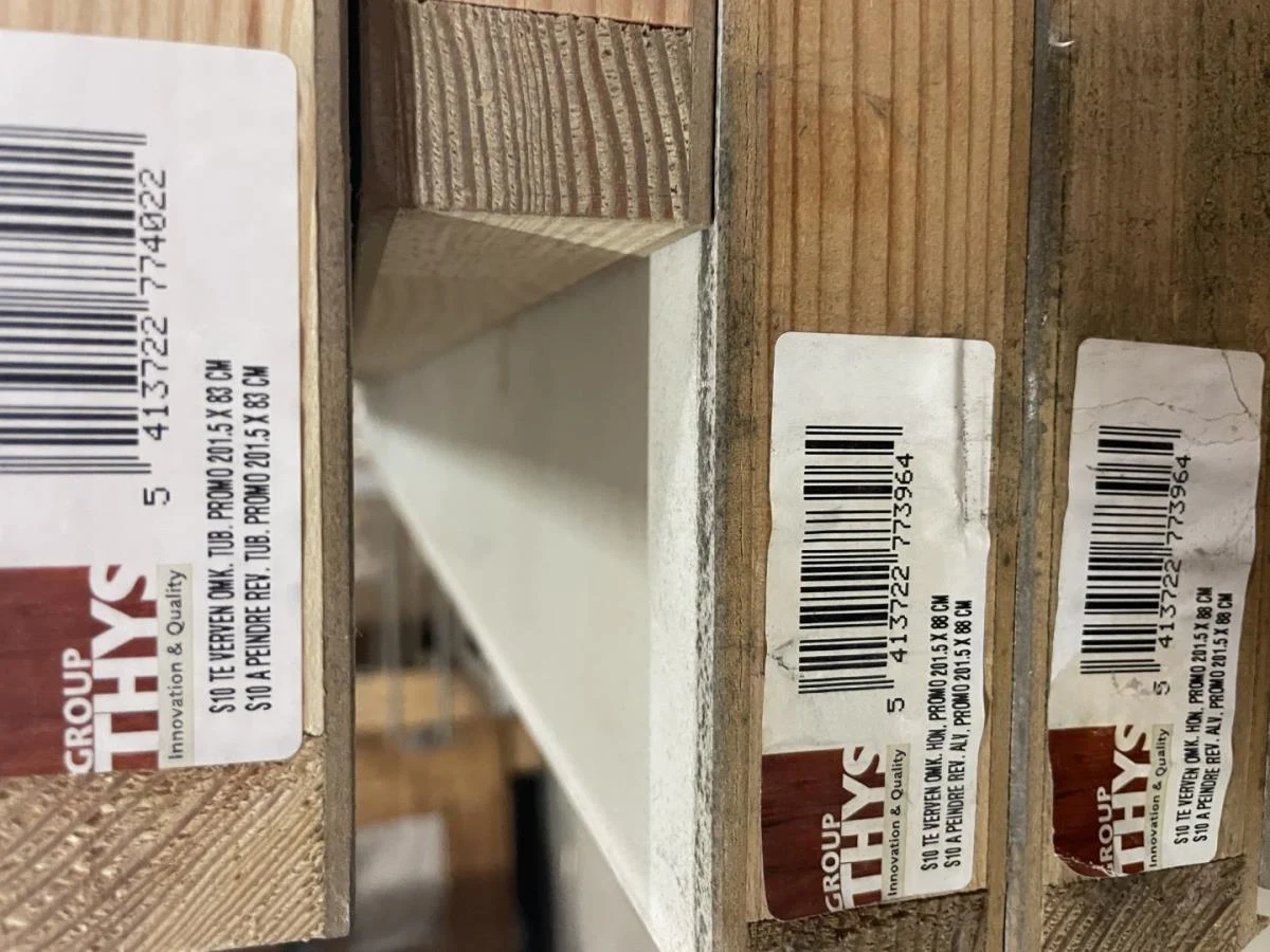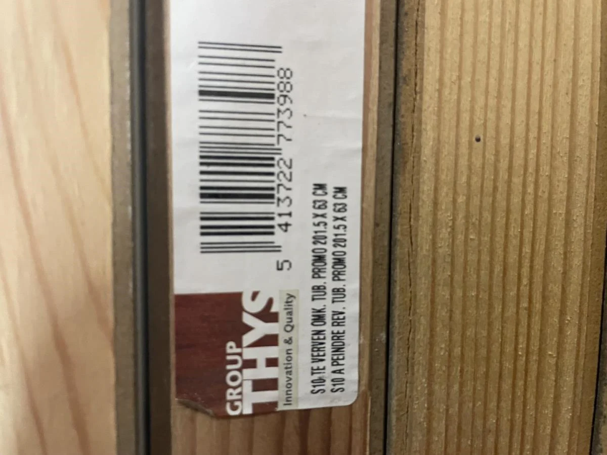 Witte schilderdeuren THYS Kern : Honingraat (lichte deur) Scharnieren en slot : voorgfreesd Krukgat/sleutegat : voorgeboord Omkeerbaar (links/rechts) 10 stuks Verschillende afmetingen : 201,5 x 63/78/83/... x 4cm 63cm breed : 1 stuk 78 cm breed : 3 stuks 83 cm breed : 4 stuks 88 cm breed : 2 stuks Deurbeslag en deurkast NIET inbegrepen NIEUW : Deuren zijn vuil en beschadigd.