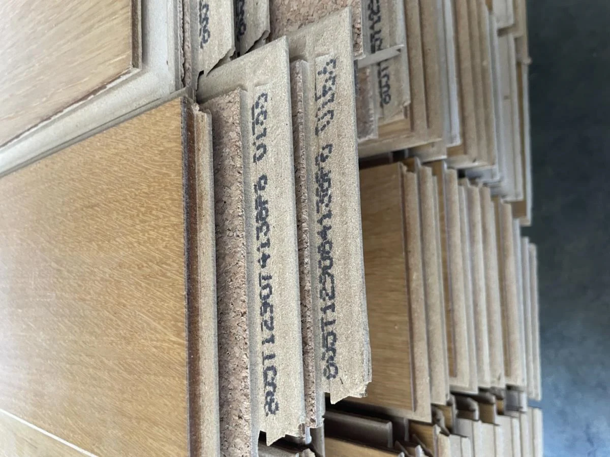 LOT fineer planken Naturel vernis Met click systeem Onderlaag bestaande uit kurk (goede isolatie) Het lot bestaat uit 30,70m2 het lot wordt verkocht in de staat hoe het zich bevind. Reedszwevend geplaatst/ gebruikt (In goede staat)