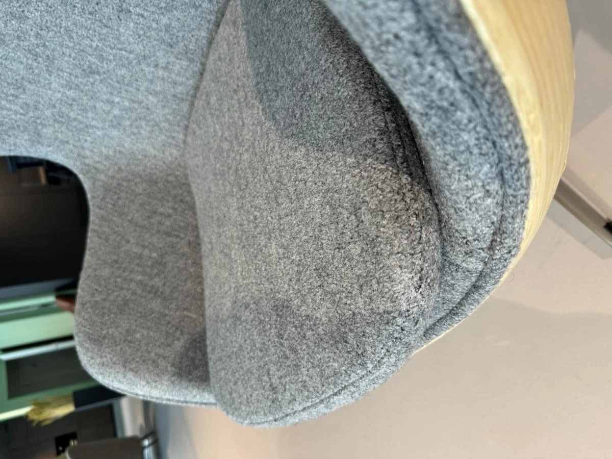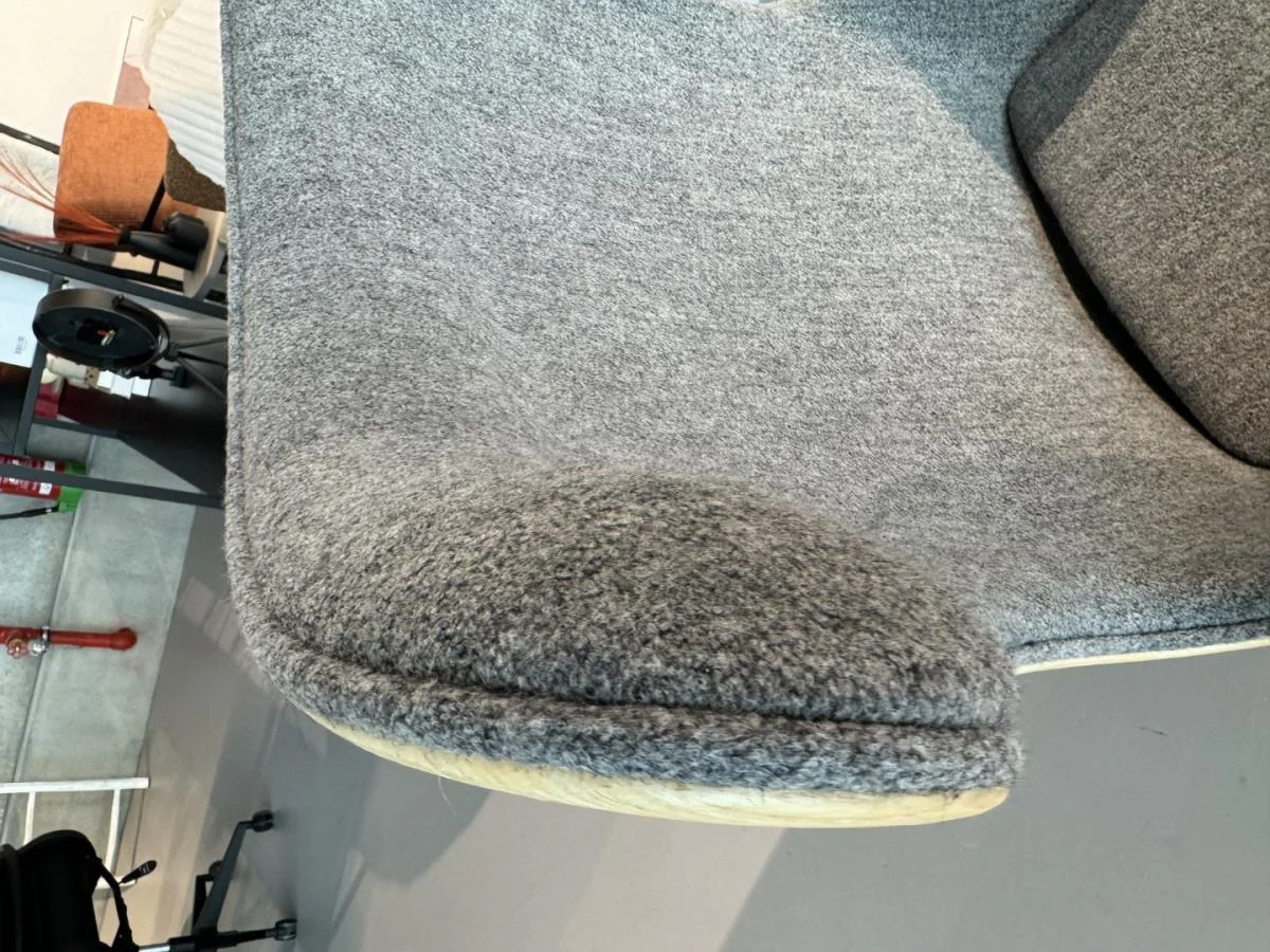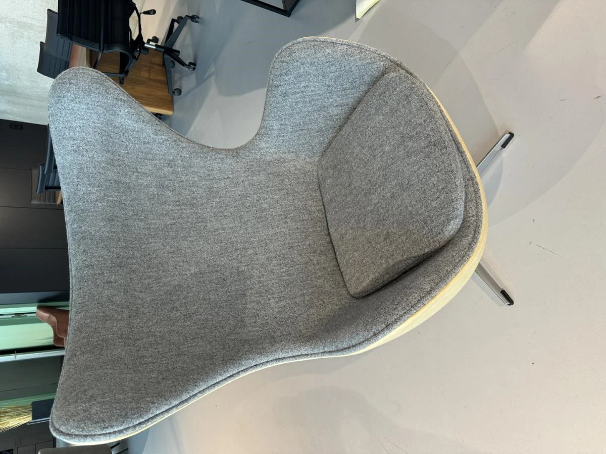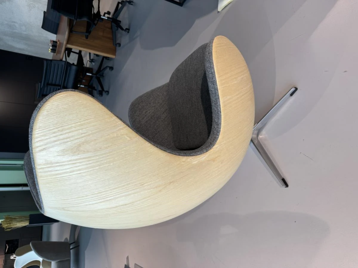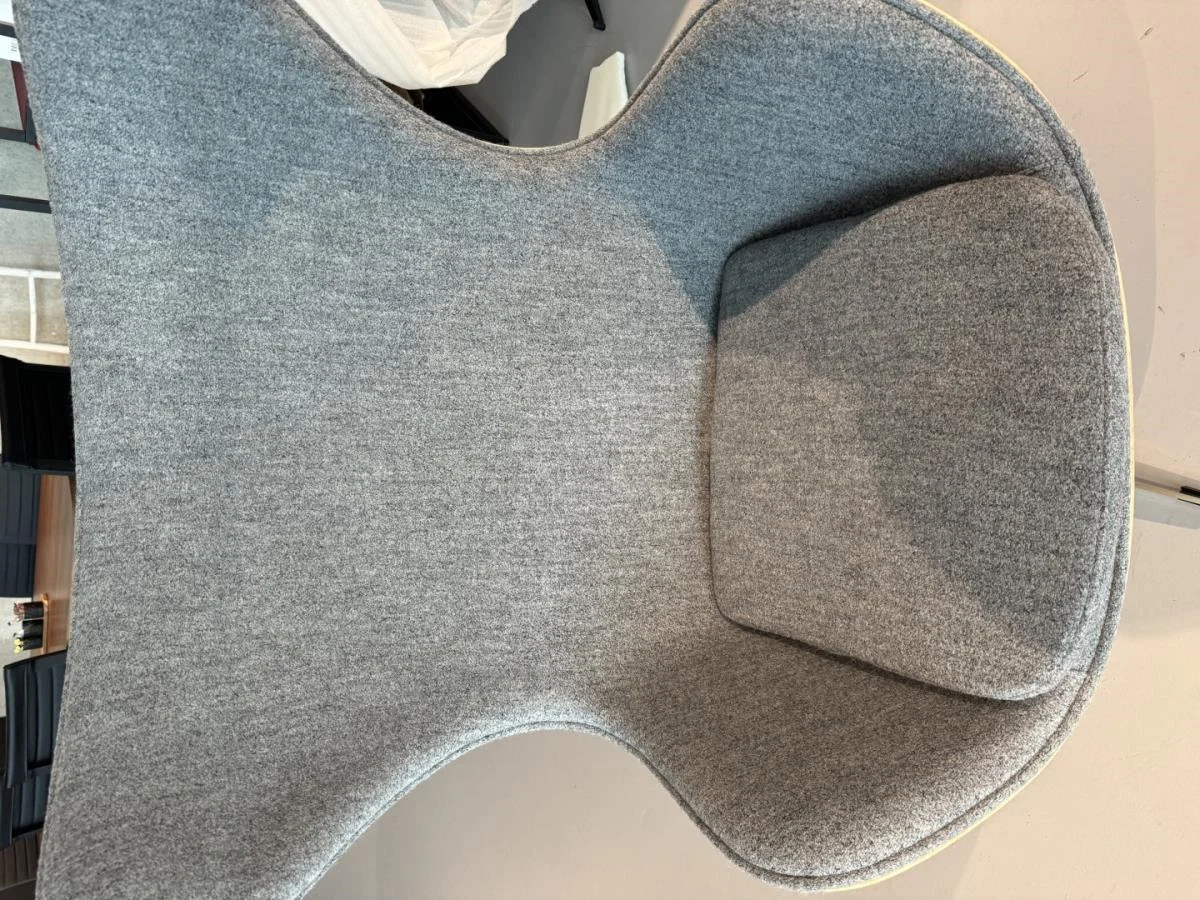 1x Egg Chair grijs fineer frame, kasmier stof, vintage look, kruispoot, draaibaar onderstel, draai en kantelbaar Let op: Bij afhaling van de goederen dient u deze zorgvuldig te controleren. Na afhaling is retour of na-service niet mogelijk. Indien u niet aanwezig bent op de afgesproken afhaaldag, worden extra kosten in rekening gebracht.