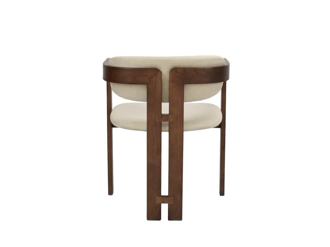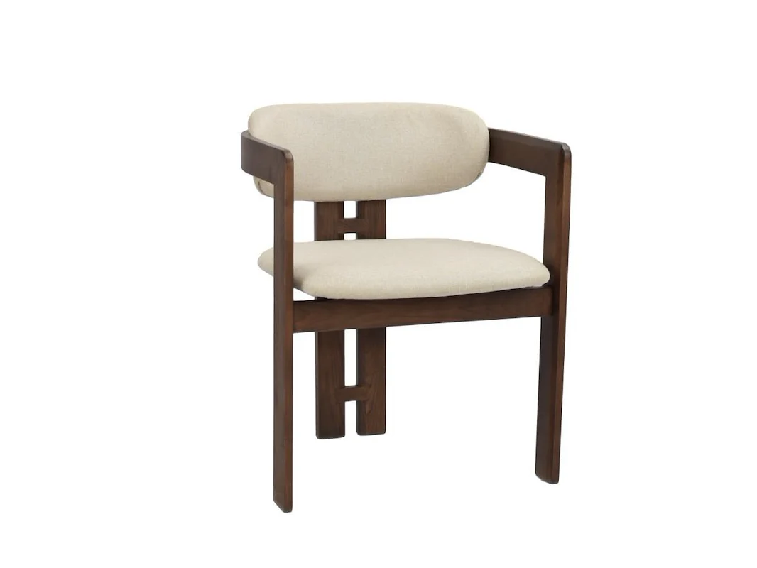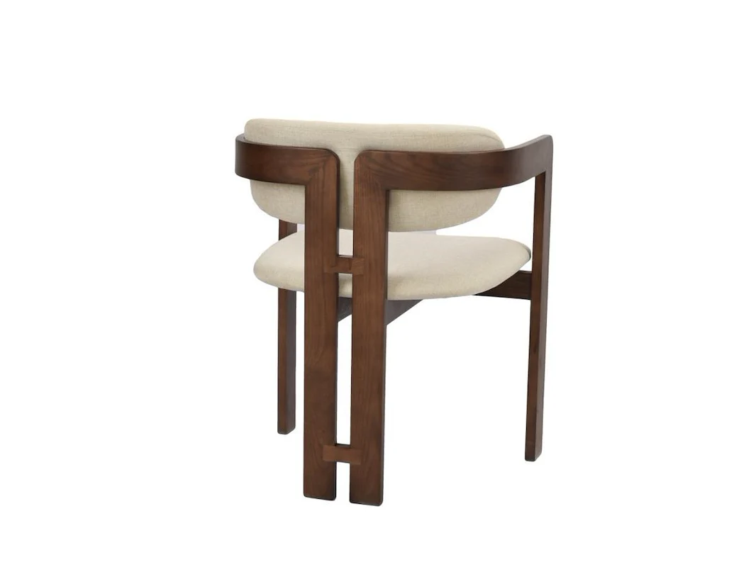 6x Design eetkamerstoel, model: Japndi, kleur: beige-walnut, massief houten frame met uitsparing, stof: beklede weave zitting en rugleuning