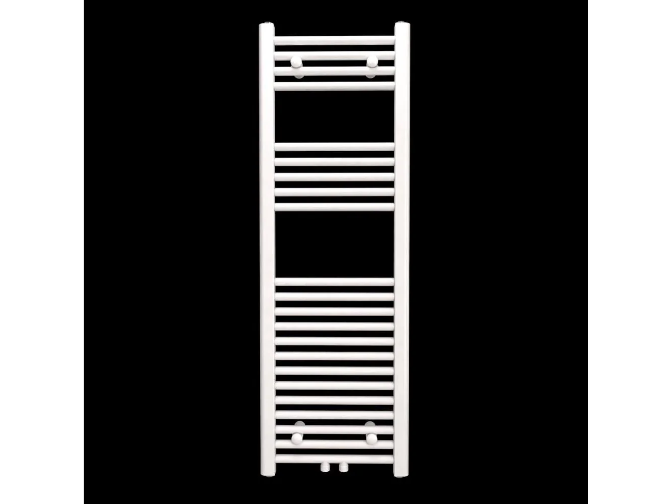 1 x Handdoekradiator met middenaansluiting - LINTEO - Afm. H1200 x B500 mm - Kleur mat wit (RAL 9016) - 483 Watt - Ronde tubes = 22 - Incl. muurbevestiging - Design kraanset niet inbegrepen - Optioneel zie design kraanset - Complete installatie kit