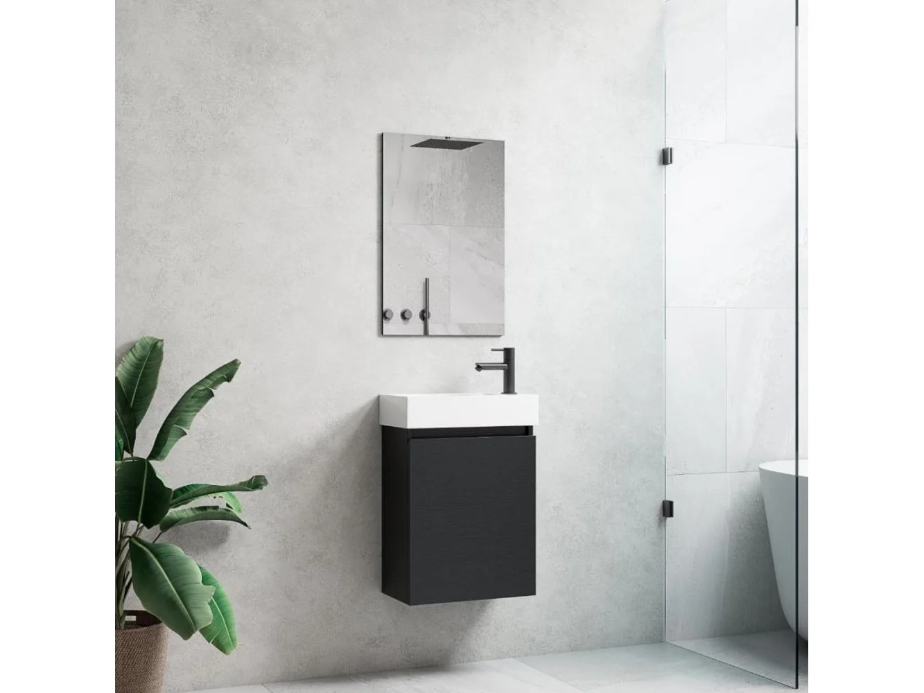 2 x 40cm Toiletmeubel COMO40 - 06 - Melamine - Kleur: Zwart Eik - Met wastafel - Afm. B40xH60xD22CM - Deur voorzien van Softclose systeem - Spiegel 40x70cm- kraan, krepin en sifon niet inbegrepen