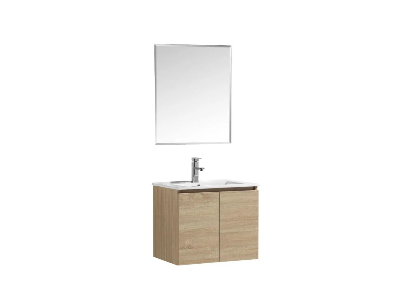 1 x 60cm badkamermeubelset MDF - BERN 600-01 - Kleur: White EIK - Afm. B60xH50xD46CM - Ceramic wastel - Deur voorzien van Softclose systeem - Spiegel 60x60cm - kraan, krepin en sifon niet inbegrepen