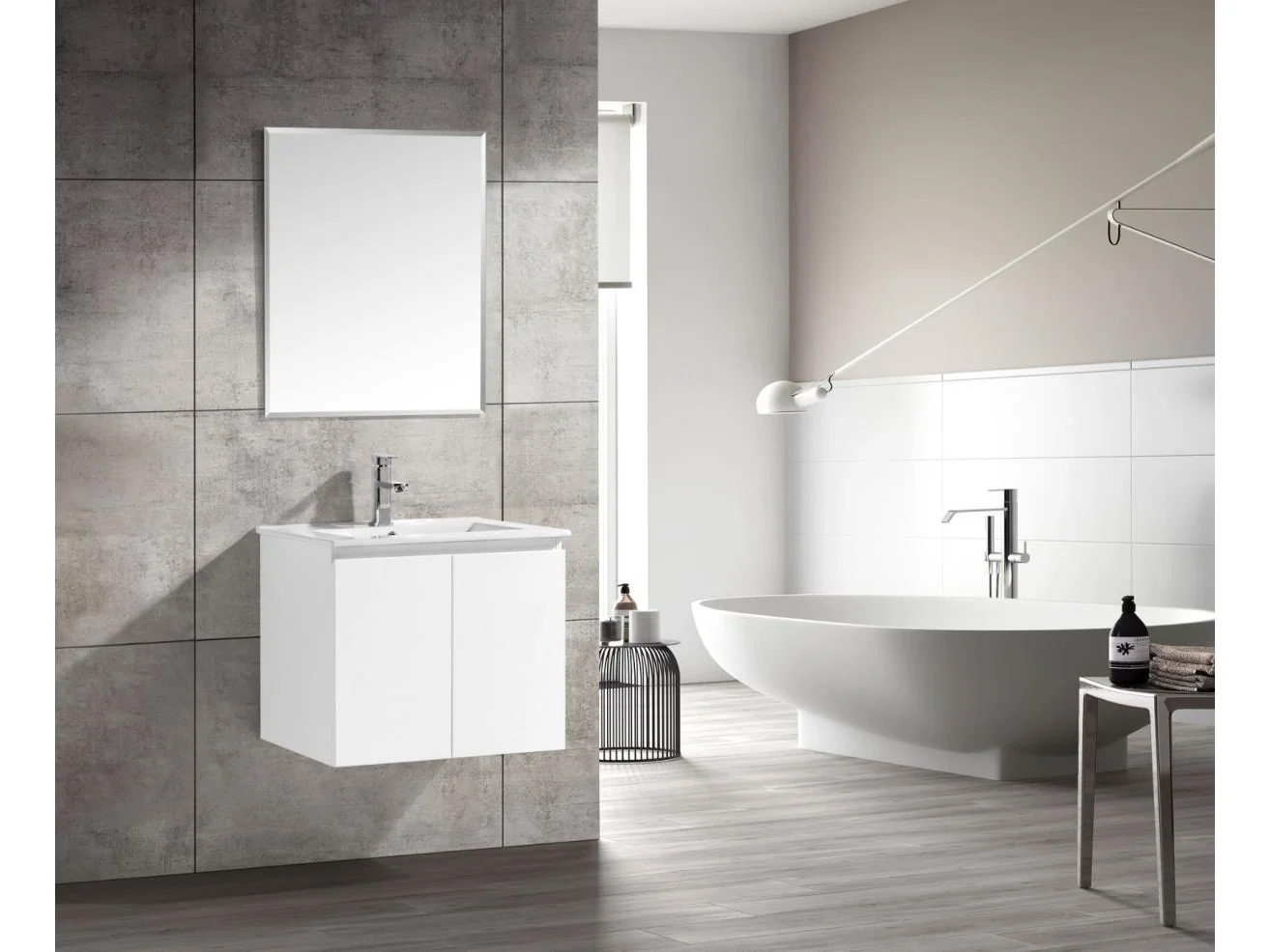 2 x 60cm badkamermeubelset MDF - BERN 600-02 - Kleur: Mat wit - Afm. B60xH50xD46CM - Ceramic wastafel - 2 deuren voorzien van Softclose systeem - Spiegel 60x60cm - kraan, krepin en sifon niet inbegrepen -
