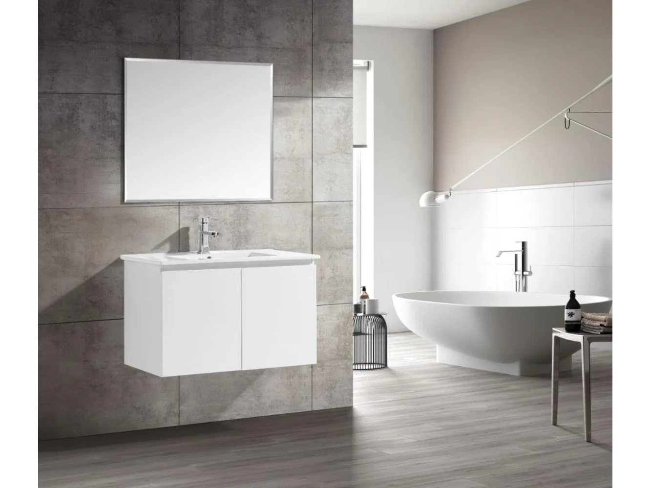 2 x 80cm badkamermeubelset MDF - BERN 800-02 - Kleur: Mat wit - Afm. B80xH50xD46CM - Ceramic wastel - 2 deuren voorzien van Softclose systeem - Spiegel 80x70cm - kraan, krepin en sifon niet inbegrepen