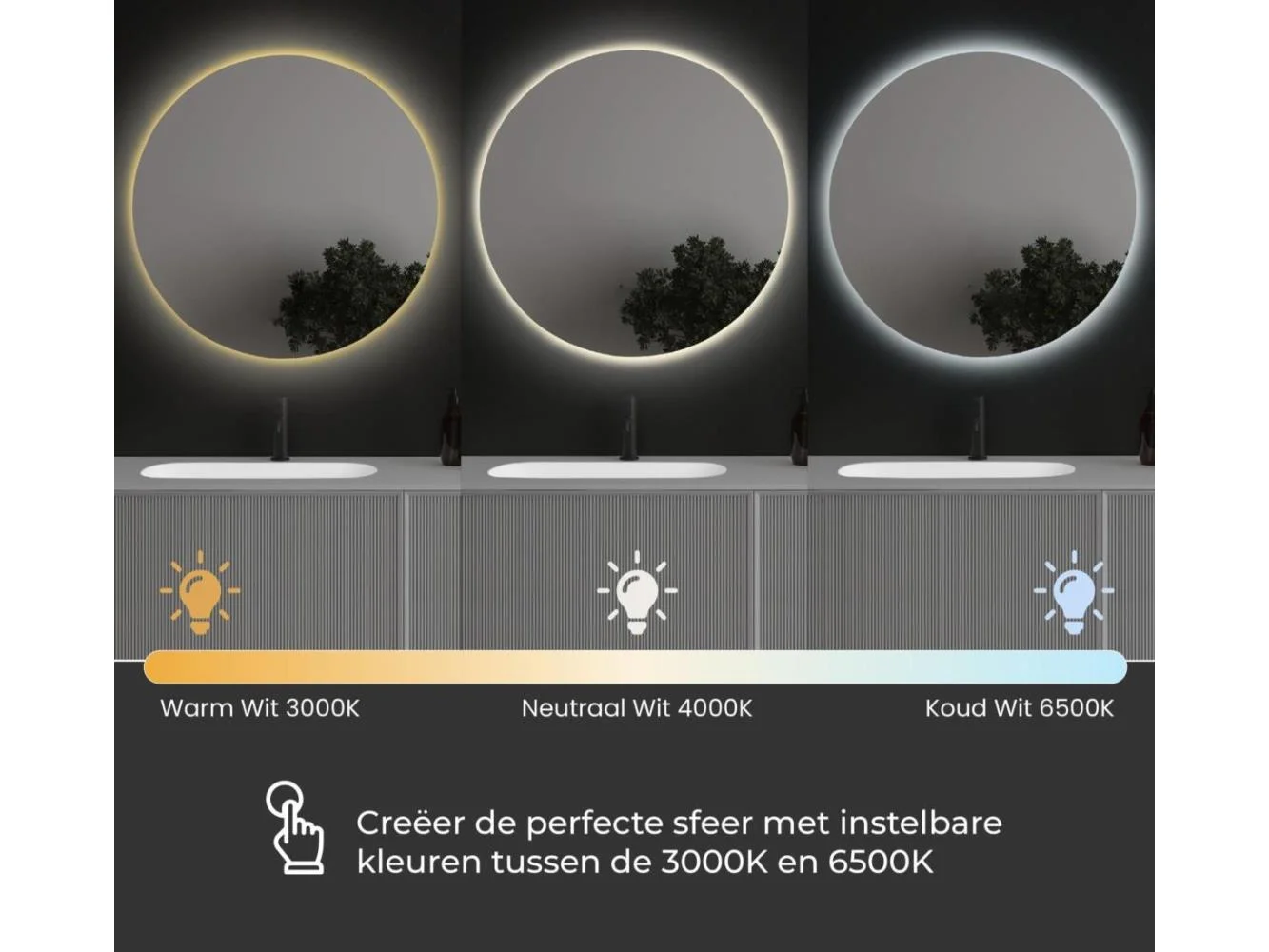 1 x Badkamerspiegel DZ80- LED Verlichting - 80cm diameter - Glas dikte 5mm - LED Spiegel 80x80cm (Verschillende kleurtemperaturen 3000K Warm-wit, 4000K Neutraal-wit, 6500K Koud-wit) + Anti Condens + Alle 3 de kleuren zijn dimbaar, zo kunt u het licht eenvoudig dimmen of feller maken tot het gewenste effect - Aansluitwaarde 230volt - IP44-waarde. Inclusief montagemateriaal - Net gewicht: 8kg