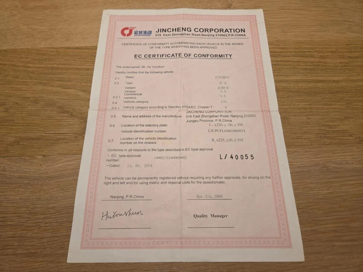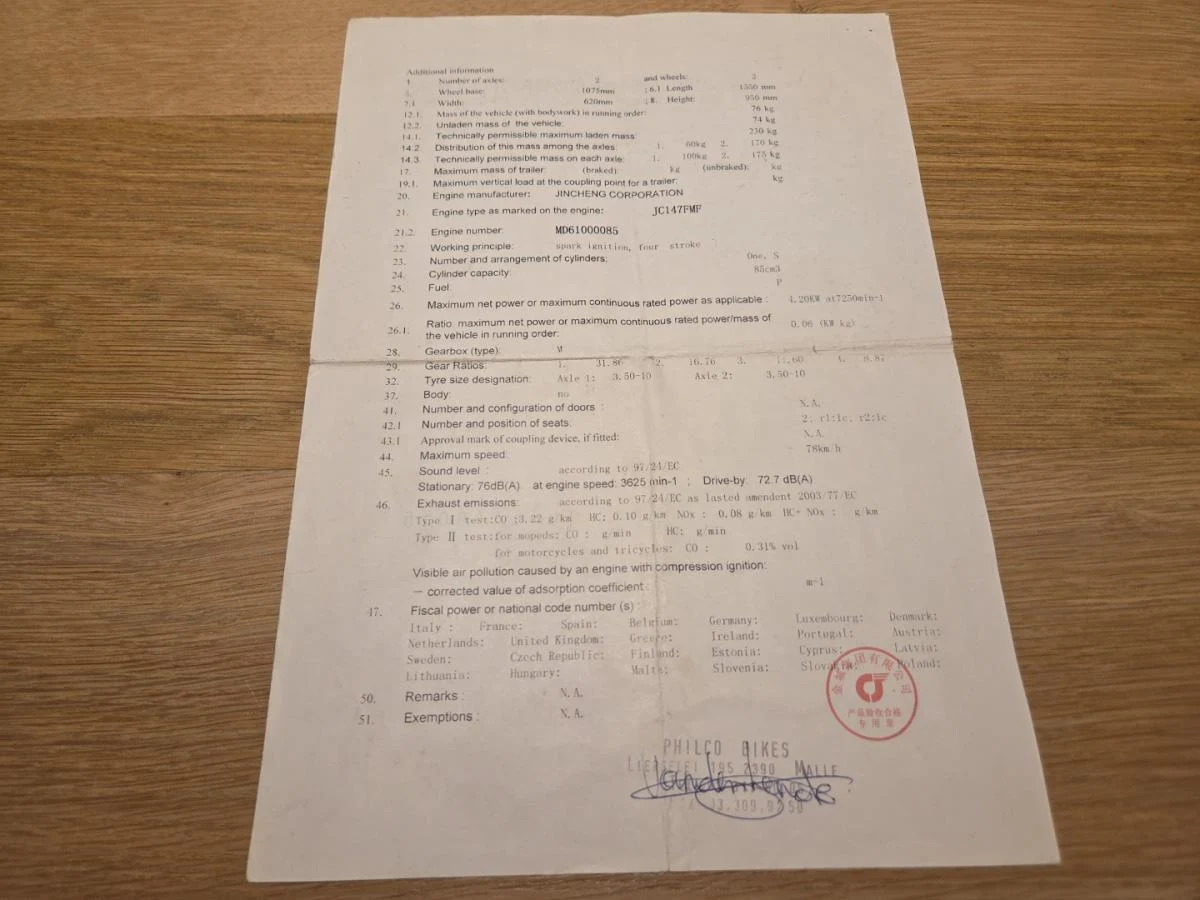 CHASSISNR LJCPCFLG061000054 vv Gelijkvormigheidsattest Geschikt voor 85cm³ cylinder Geschikt voor A1 klasse koper staat zelf in voor verkrijgen van nodige inschrijvingsdocumenten